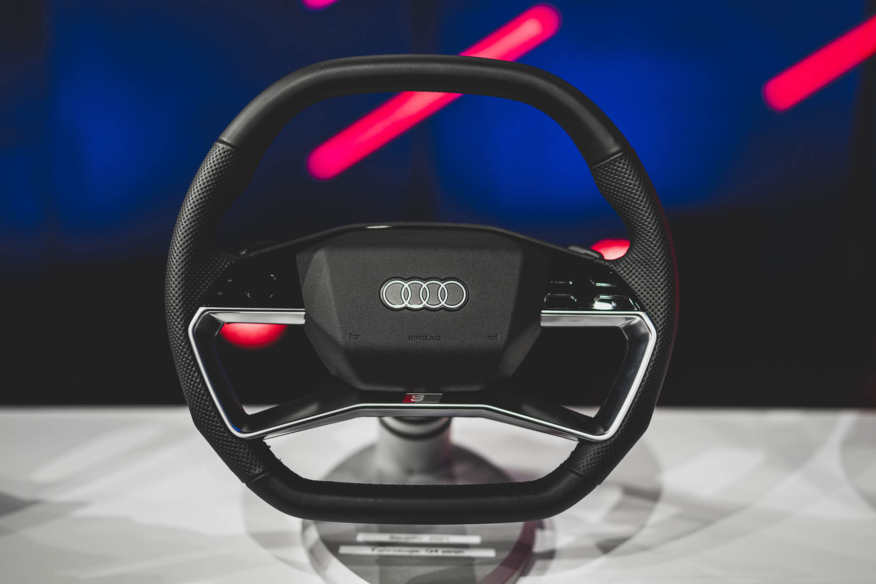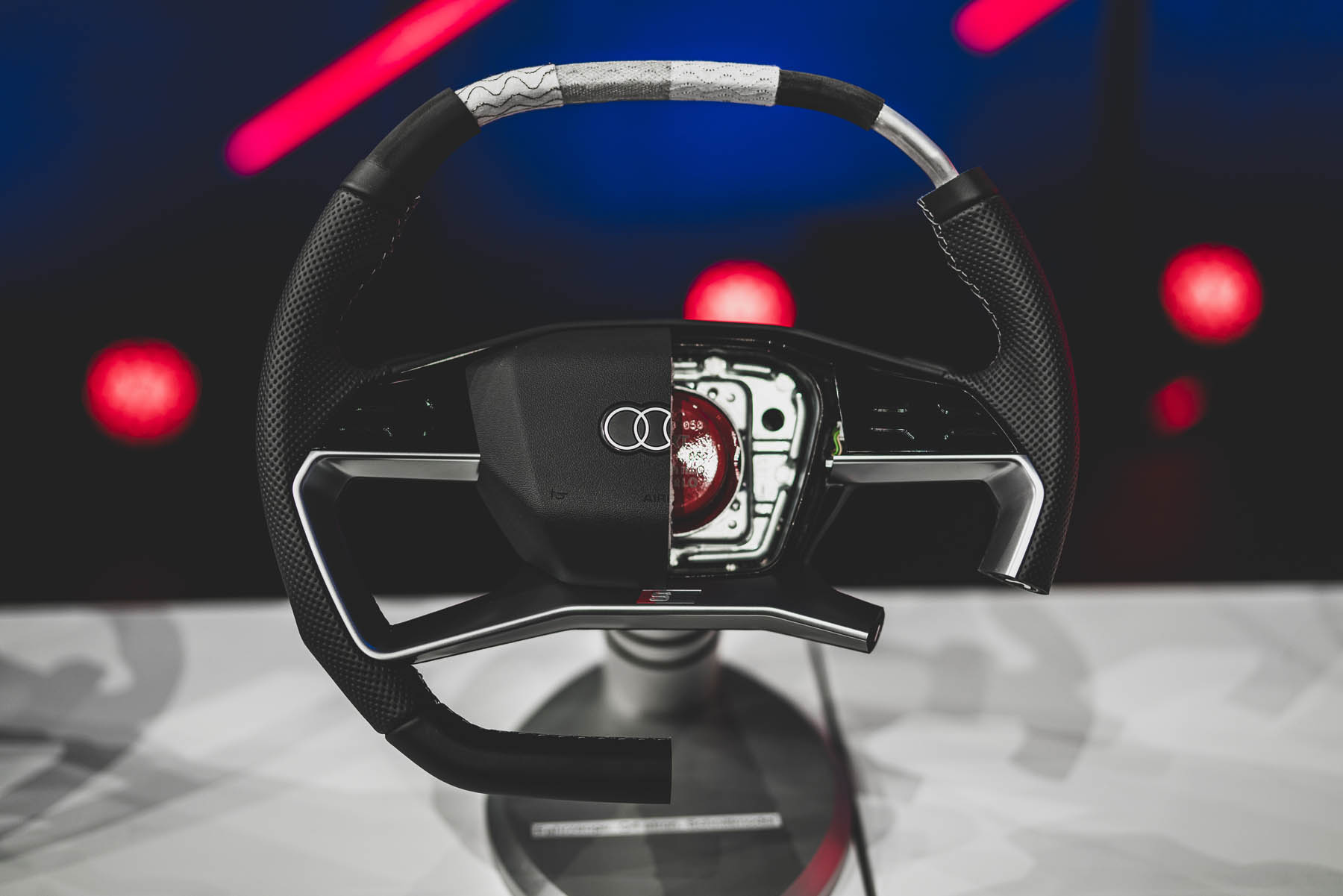 Σε σύγκριση με τον ανταγωνισμό, οι ακτίνες στα τιμόνια Audi έχουν πραγματικά πολύ λεπτό σχεδιασμό – μια πρόκληση όσον αφορά την αντοχή και την ασφάλεια σύγκρουσης. Ένα άλλο δόγμα: όλα τα όργανα ελέγχου στο τιμόνι πρέπει να είναι προσβάσιμα και με τους δύο αντίχειρες χωρίς να επηρεάζεται η οδήγηση.