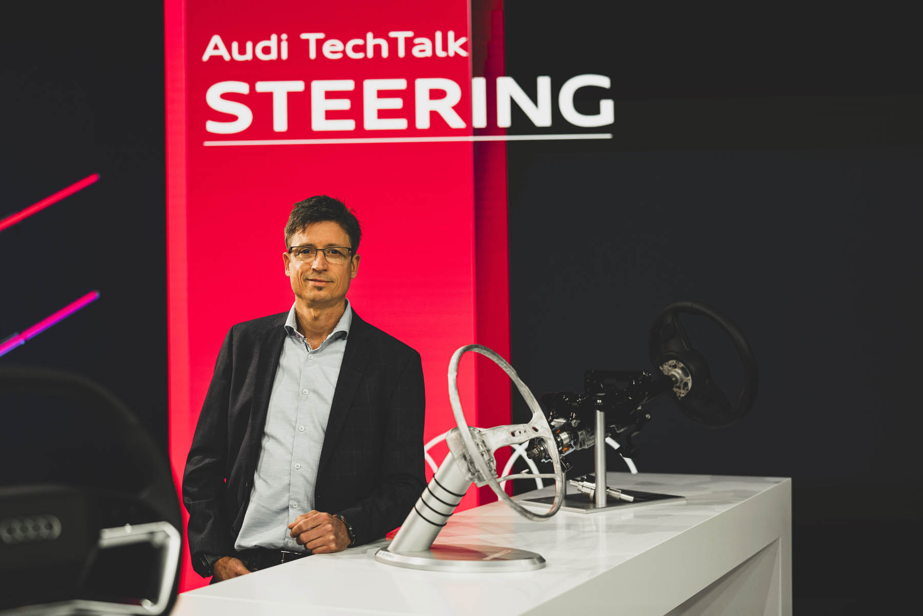 Οι προγραμματιστές της Audi εργάζονται για τον τέλειο συνδυασμό δυναμικού χειρισμού και άνεσης. Ταυτόχρονα, οι λειτουργίες υποβοήθησης διεύθυνσης προσφέρουν πρόσθετη ασφάλεια και υποστήριξη στην καθημερινή οδήγηση – για αλλαγή λωρίδων, κατεύθυνσης και στάθμευσης. Ως αποτέλεσμα, το τιμόνι εμφανίζεται ολοένα και περισσότερο ως συσκευή επικοινωνίας, απομακρύνεται από τον αρχέτυπο ρόλο του και μετατρέπεται σε κέντρο διοίκησης υψηλής τεχνολογίας. Ο υπεύθυνος εξέλιξης δυναμικών χαρακτηριστικών Carsten Jablonowski μας απαντά σε μερικές ερωτήσεις: