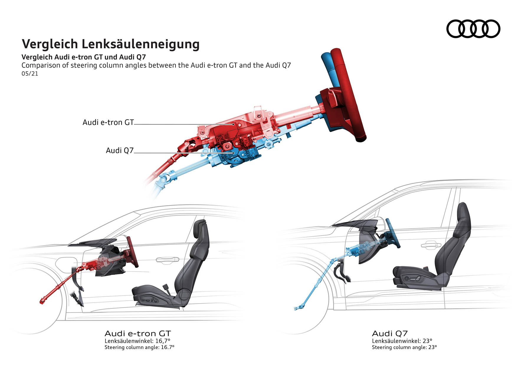 – Η γωνία του τιμονιού εξαρτάται πάντα από τη θέση καθίσματος του οδηγού και είναι μεταξύ 17 και 24 μοιρών, ανάλογα με το concept του οχήματος. Στα SUV Audi, η γωνία κυμαίνεται μεταξύ 22 και 24 μοιρών. σε συμπαγή αυτοκίνητα, λιμουζίνες και τη σειρά Avant, είναι 17 έως 21 μοίρες. Σε σπορ μοντέλα, όπου ο οδηγός κάθεται σχετικά χαμηλά και όρθια, η γωνία της κολόνας τιμονιού είναι πολύ επίπεδη. Αυτό σημαίνει ότι το τιμόνι είναι τοποθετημένο με γωνία πολύ απότομη προς τον οδηγό.