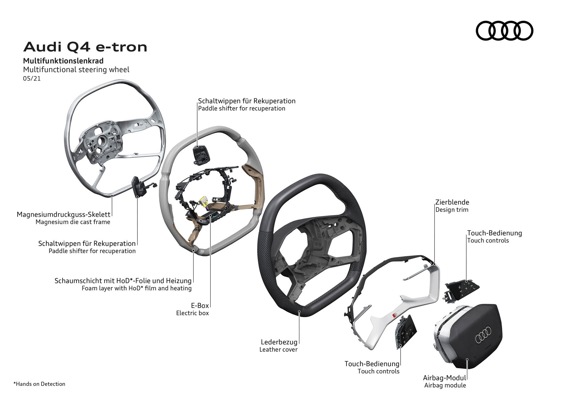 – Τα σταθερά μεγέθη έχουν καθιερωθεί για σχεδιασμό και αίσθηση. Η γεωμετρία της καθορίζει το συνολικό σχήμα κάθε τιμονιού. Υπάρχει ένα κριτήριο στην Audi: η γεωμετρία και το κέντρο της στεφάνης πρέπει να είναι όσο το δυνατόν μικρότερα και συμπαγή. Ταυτόχρονα, τα τιμόνια πρέπει να έχουν σπορ σχεδιασμό. Η Audi καθόρισε τα 375 χιλιοστά (14,76 ίντσες) ως τη διάμετρο της στεφάνης του τιμονιού και αυτό ισχύει σε όλες τις σειρές. Ο οβάλ σχεδιασμός του προφίλ στεφάνης αντιστοιχεί σε ένα φυσικά κλειστό περίγραμμα παλάμης.