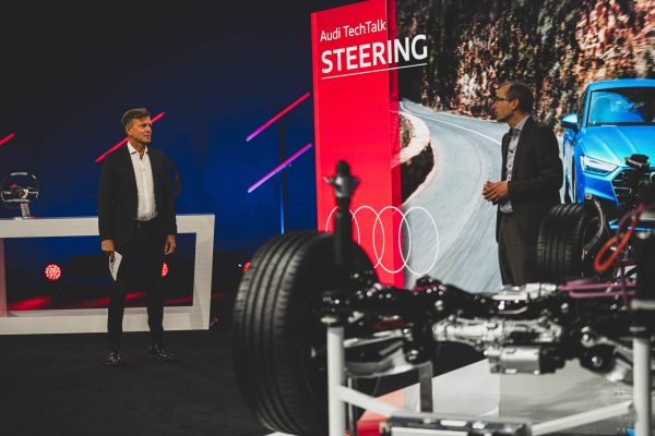– Η ισορροπία του συστήματος διεύθυνσης επηρεάζεται ουσιαστικά από τα τρία στοιχεία της φυσικής οδήγησης: διαμήκη, πλευρική και κατακόρυφη δυναμική. Εκτός από την επιτάχυνση και την επιβράδυνση του οχήματος, οι πλευρικές δυνάμεις που προκύπτουν κατά την οδήγηση σε καμπύλη τροχιά, καθώς και οι διακυμάνσεις του φορτίου των τροχών και οι δονήσεις μάζας στο σασί έχουν επίσης αντίκτυπο. Ο κύριος στόχος για τους μηχανικούς της Audi είναι η κατάλληλη ανατροφοδότηση από τις δυνάμεις του μπροστινού άξονα σε σχέση με τις συνθήκες οδήγησης, την ισορροπία, το επίπεδο πρόσφυσης και τις ανωμαλίες στον δρόμο.