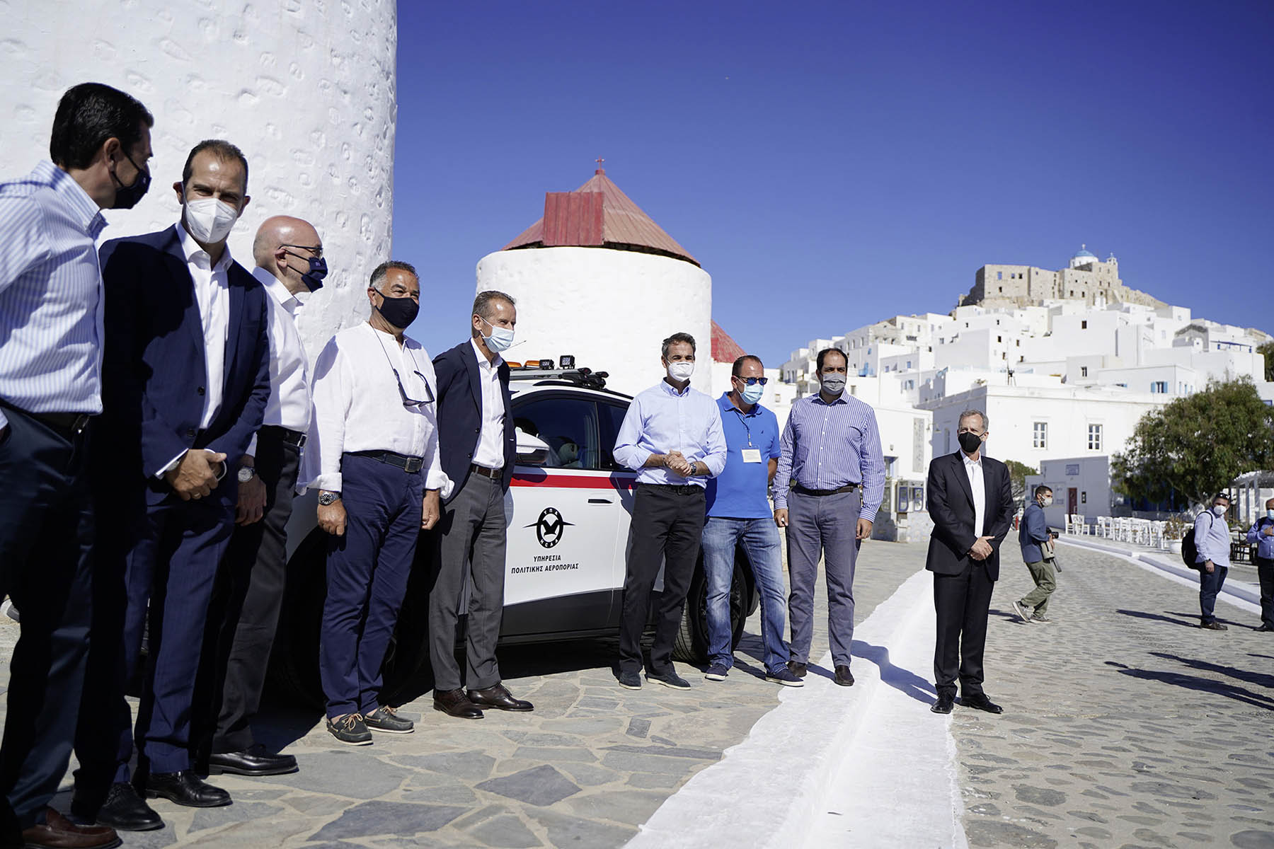Astypalea: Kick-off for transformation to smart, sustainable islVolkswagen CEO Herbert Diess and Prime Minister Kyriakos Mitsotakis handover Greece’ first electric police car in Astypalea.