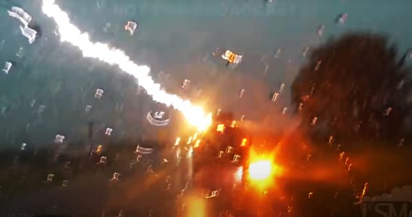 Κάπου στο Κάνσας ένα Jeep προπορεύεται της κάμερας και σίγουρα κανείς δεν περίμενε πως ξαφνικά θα έπεφτε πάνω του κεραυνός. Μάλιστα οι εκκενώσεις που έγιναν ήταν τουλάχιστον δύο με χιλιάδες βολτ να χτυπούν το αυτοκίνητο και την γύρω περιοχή.