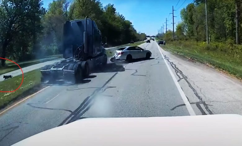 Όπως μπορείτε να δείτε στο παρακάτω βίντεο ο οδηγός ενός Nissan πήγε να αποφύγει ένα σκύλο αλλά το φορτηγό που ακολουθούσε δεν πρόλαβε να φρενάρει.