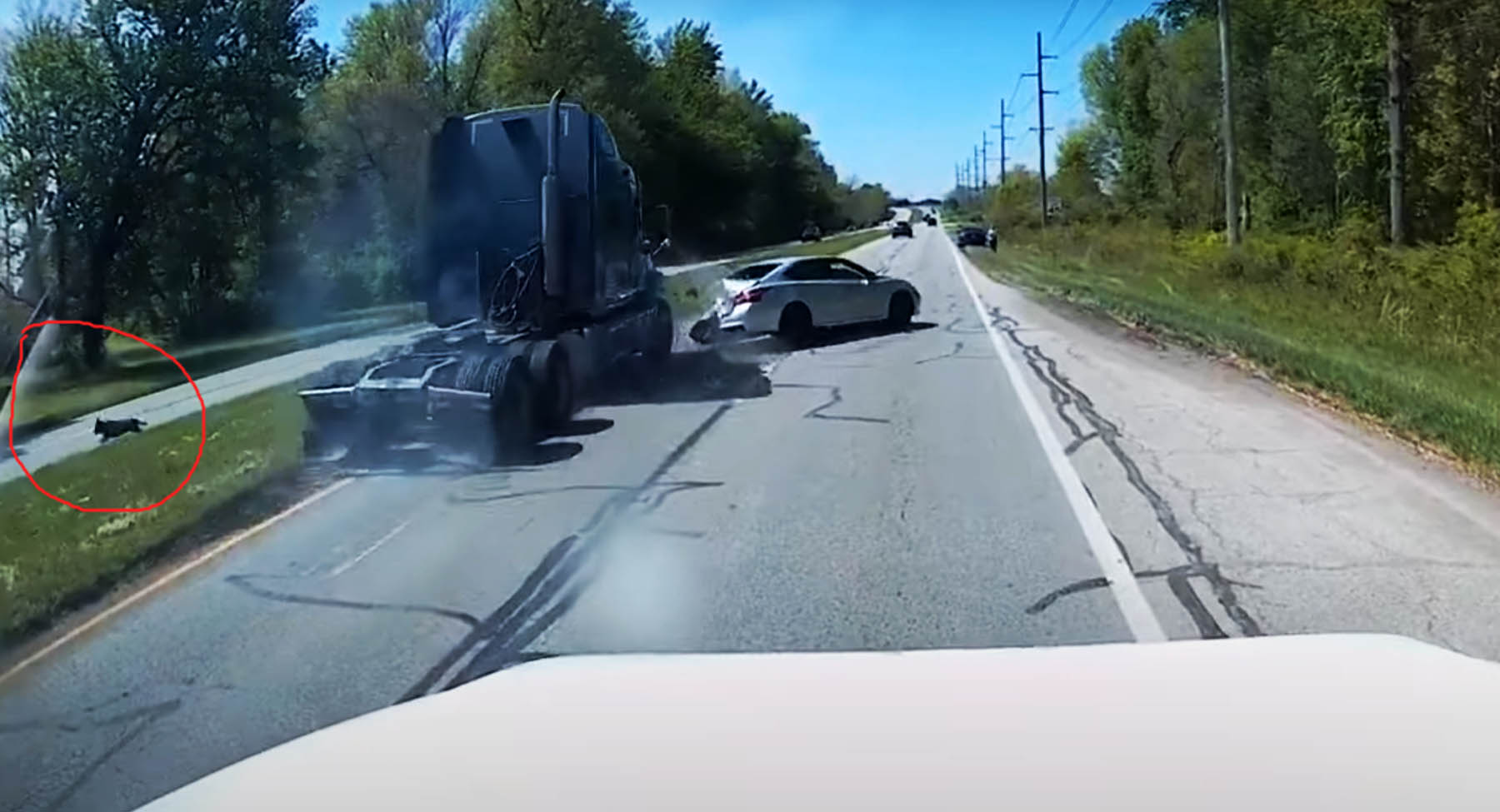 To περιστατικό καταγράφηκε από onboard κάμερα στο Κεντάκι των HΠΑ και όπως βλέπουμε ένα ασημί Nissan Altima κινείται στην αριστερή λωρίδα. Ξαφνικά ο οδηγός του αντιλαμβάνεται ένα σκυλάκι που πάει να διασχίσει το δρόμο και φρενάρει για να μην το πατήσει.