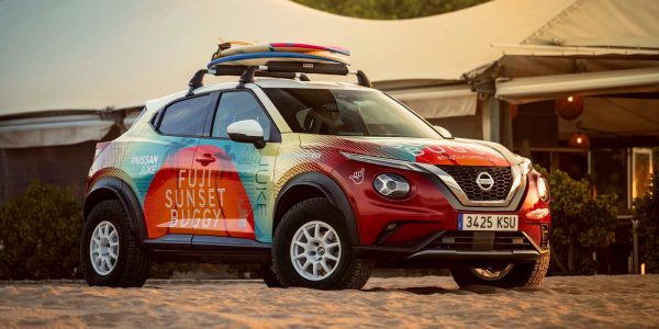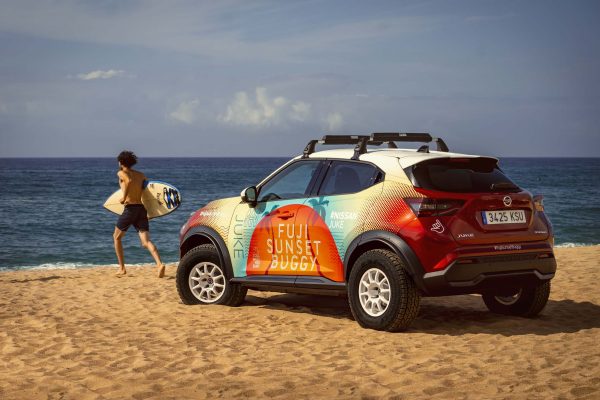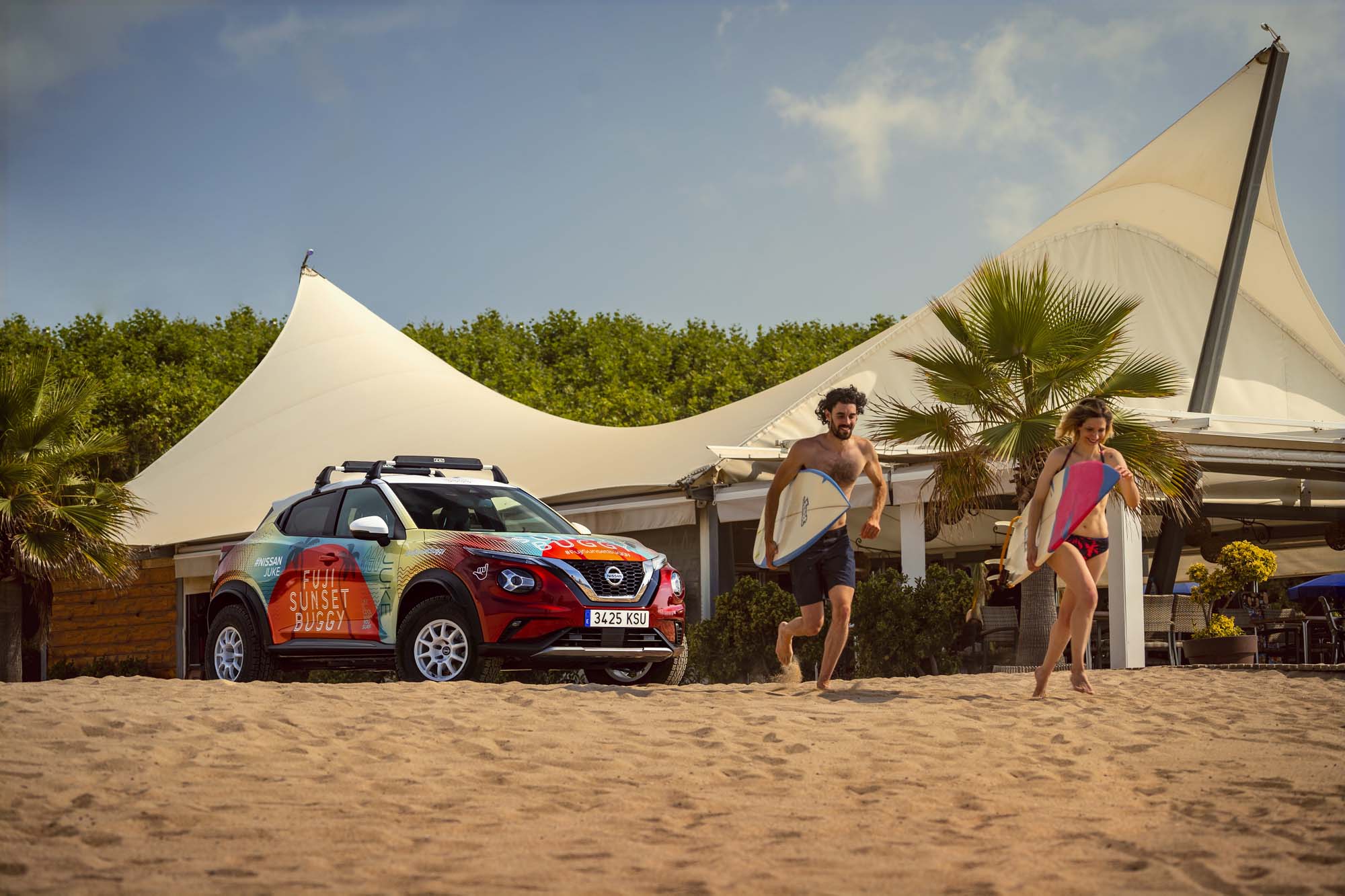 Το πρωτότυπο Juke Fuji Sunset Buggy αποτελεί την πιο όμορφη πρωτότυπη εκδοχή του ξεχωριστού compact crossover και έχει σχεδιαστεί για τους λάτρεις των θαλάσσιων σπορ, που εξερευνούν τις καλύτερες παραλίες με τις σανίδες του surf, στην οροφή του αυτοκινήτου τους.