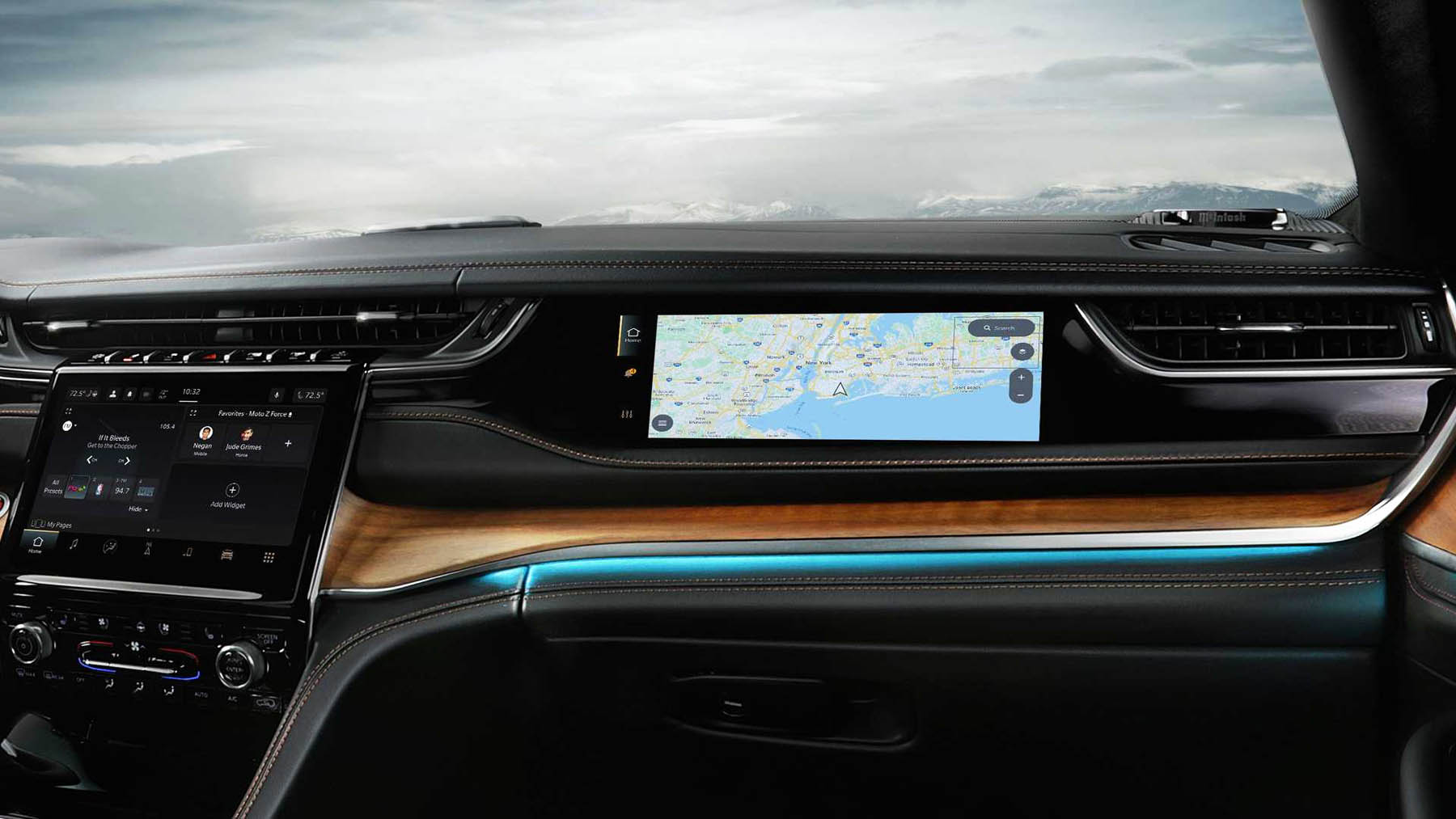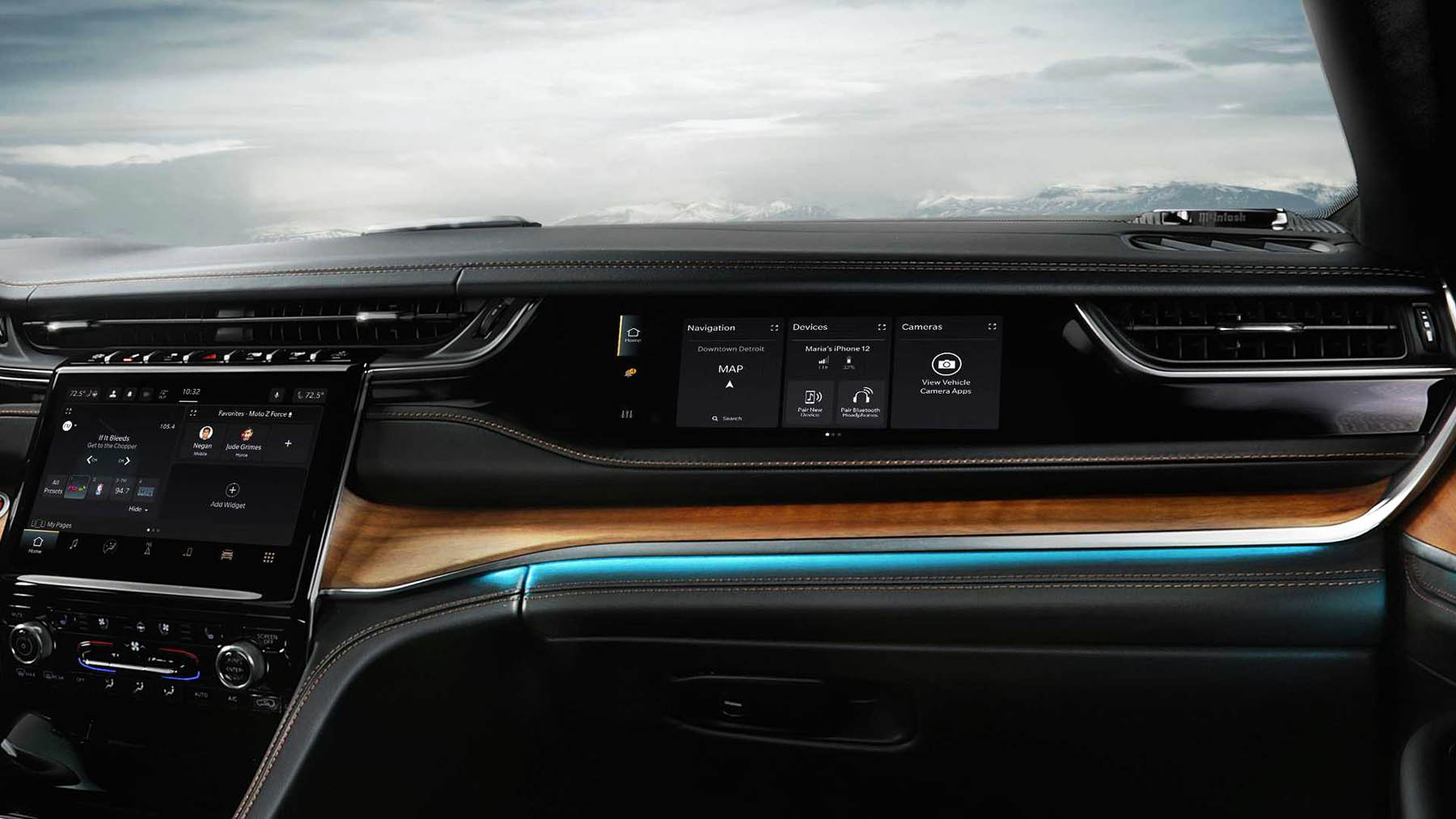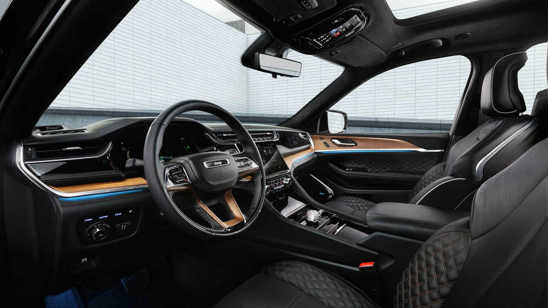 Ο συνολικός διαθέσιμος χώρος για τους επιβάτες ξεπερνά τα 4 τετραγωνικά μέτρα, ενώ ο χώρος αποσκευών με 1.000 λίτρα επιτρέπει ακόμα και την κάθετη τοποθέτηση μιας τσάντας με μπαστούνια του γκολφ. Ιδιαίτερη προσοχή έχει δοθεί στους επιβάτες της δεύτερης και της τρίτης σειράς ώστε να απολαμβάνουν μια ξεχωριστή εμπειρία μετακίνησης, χάρη και στο Amazon Fire TV και τις πίσω οθόνες, μέσω των οποίων είναι εφικτή η αναπαραγωγή μουσικής και video, η περιήγηση στο internet, ακόμα και η ρύθμιση του κλιματισμού για κάθε επιβάτη ξεχωριστά. Τέλος την κορυφαία ακουστική εμπειρία εξασφαλίζει το ηχοσύστημα της McIntosh απόδοσης 950W, με την Jeep να έχει την αποκλειστικότητα συνεργασίας με αυτό το φημισμένο κατασκευαστή hi-end συστημάτων.