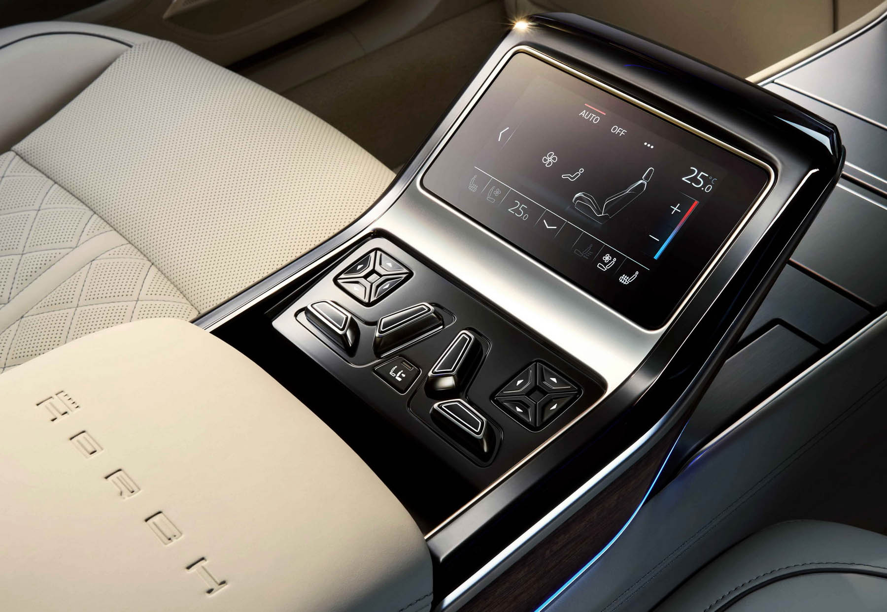 Η καμπίνα σφύζει πολυτέλειας και προσφέρει όλα τα κομφόρ για VIP μετακινήσεις όπου τα πίσω καθίσματα έχουν οκτώ διαφορετικά μασάζ, υπάρχουν οθόνες για τους πίσω επιβάτες, μία κεντρική για τον έλεγχο λειτουργιών του οχήματος, κορυφαίας πιστότητας ηχοσύστημα της B&O, κλιματισμό με διακριτικό αρωματισμό που επιλέγεται από τους επιβάτες κ.α.