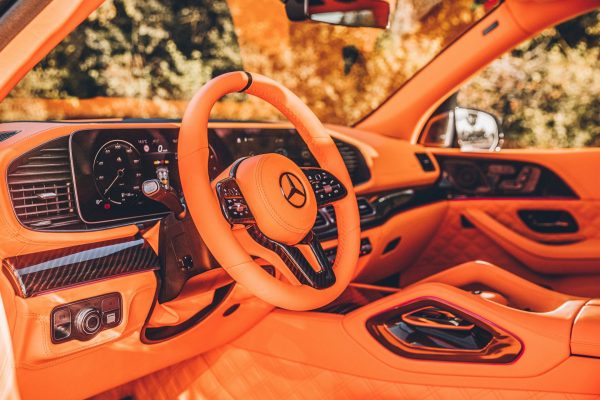Την κυριαρχία του πορτοκαλί χρώματος σπάνε σε ελάχιστα σημεία κάποιες επενδύσεις από κάρμπον και οι πολλές οθόνες που διαθέτει στον εξοπλισμό του το αυτοκίνητο. Εξοπλισμός που παραμένει στα απολύτως κορυφαία επίπεδα που περιμένει κανείς από το πιο ακριβό και πολυτελές SUV της Mercedes.