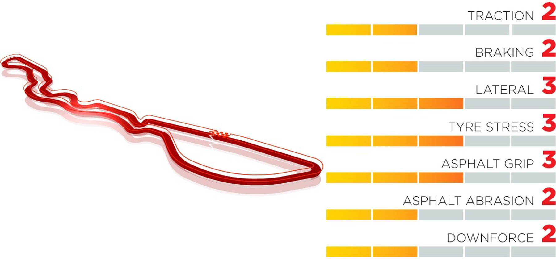 - Αρκετά σημεία της διαδρομής είναι στενά και εκεί δε συγχωρούνται λάθη καθώς οι τοίχοι βρίσκονται πολύ κοντά στην πίστα. Αυτό πιθανόν να οδηγήσει σε εμφανίσεις του αυτοκινήτου ασφαλείας και να επηρεάσει τη στρατηγική.