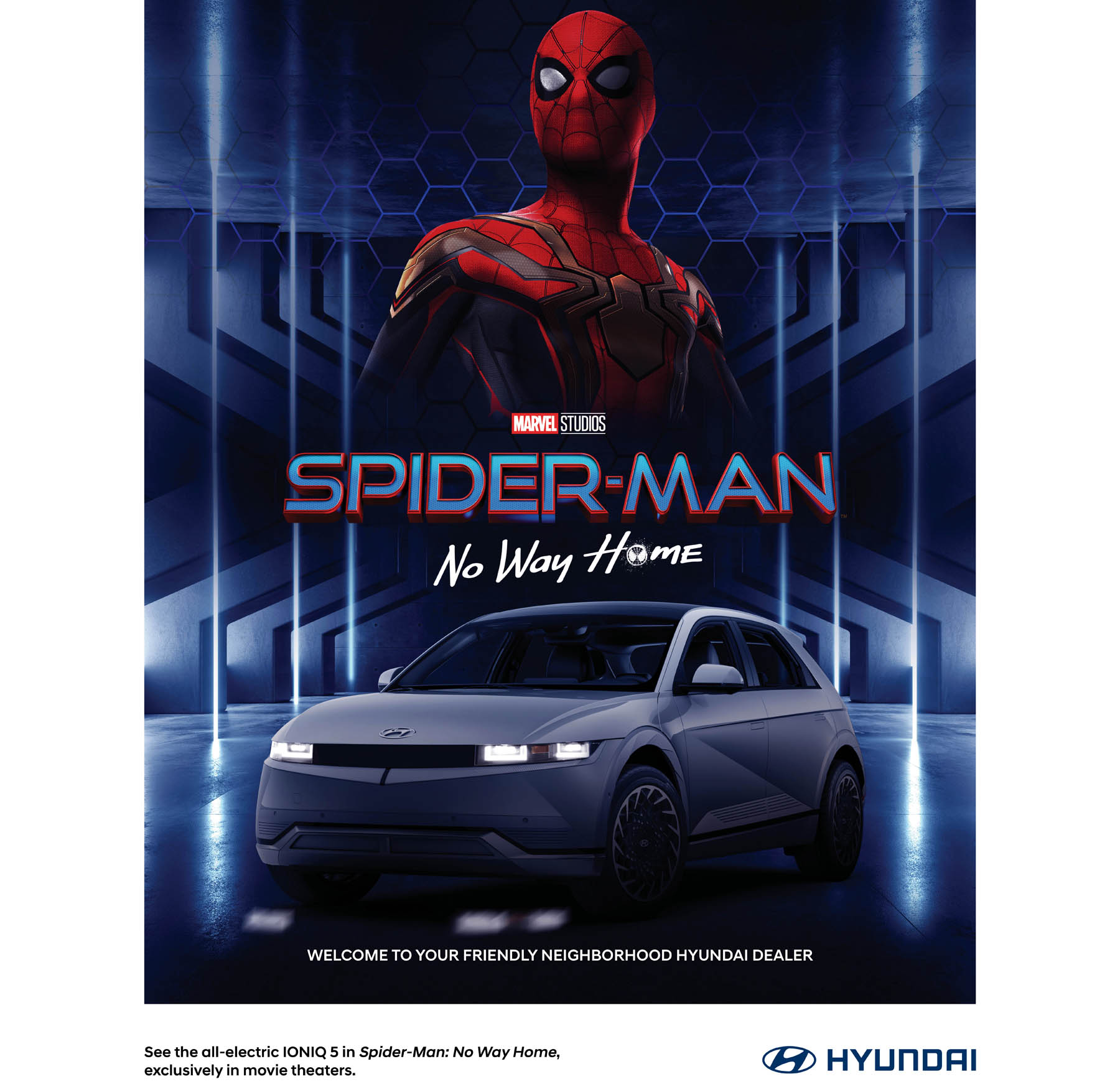 Η Hyundai Motor θα ακολουθήσει ποικίλες ενέργειες marketing χρησιμοποιώντας τα δικαιώματα πνευματικής ιδιοκτησίας που σχετίζονται με την ταινία «Spider-Man: No Way Home». Ανάμεσά τους είναι η μεγάλης διάρκειας διαφήμιση, «Only Way Home», την οποία σκηνοθετεί ο Jon Watts, ο σκηνοθέτης των τριών πιο πρόσφατων ταινιών του Spider-Man, και πρωταγωνισθεί ο Tom Holland ως Spider-Man και ο καλύτερος φίλος του Ned Leeds. που υποδύεται ο Jacob Batalon.