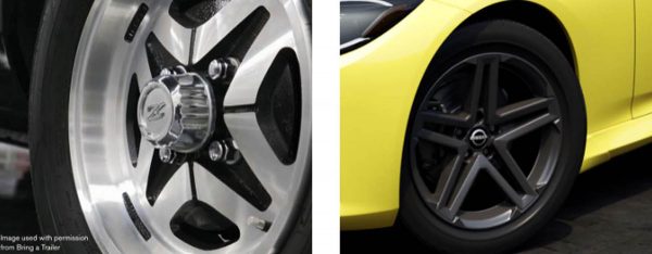 Ζάντες 18 ιντσών: Οι ζάντες 5 ακτίνων αποτελούν φόρο τιμής στη σχεδίαση των ζαντών  4 ακτίνων που συναντώνται  στο Z πρώτης γενιάς, με παχιές γραμμές ακτίνων και τις οπές των μπουλονιών σε εσοχή στον “αρνητικό” χώρο του τροχού.