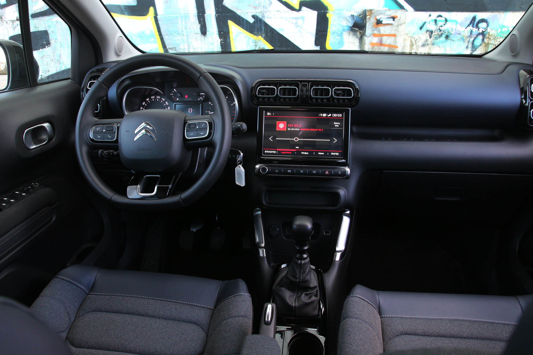 To μήκος του δεν ξεπερνά τα 4,15 μέτρα, αριθμός που προδιαθέτει για ευρυχωρία χωρίς όμως να ξεφεύγει από τον compact χαρακτήρα που θέλει να περάσει το γαλλικό μοντέλο. Για να είμαστε ειλικρινείς, μέσα από τη συμβίωση με το υπερυψωμένο C3 αντιληφθήκαμε πως οι χώροι του είναι επαρκέστατοι για μία τετραμελή οικογένεια, με highlight -της φιλοσοφίας Advanced Comfort- τόσο τα συρόμενα πίσω καθίσματα (κατά 15 εκατοστά) που εκτοξεύουν το χώρο αποσκευών από τα 410 στα 520 λίτρα, όσο και το ύψος του που είναι διαθέσιμο λόγω της τετράγωνης σχεδίασης του πίσω μέρους.