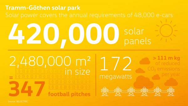 H Volkswagen, με στόχο την παραγωγή «πράσινης» ηλεκτρικής ενέργειας για ηλεκτρικά αυτοκίνητα, υποστήριξε ενεργά τη δημιουργία ενός γιγάντιου φωτοβολταϊκού πάρκου στη Βόρεια Γερμανία. Το φωτοβολταϊκό πάρκο Tramm-Göthen, περίπου 60 χιλιόμετρα ανατολικά του Αμβούργου, καλύπτει μία έκταση περίπου 2,5 εκατομ. τ.μ., ίση σχεδόν με 350 γήπεδα ποδοσφαίρου, μια από τις μεγαλύτερες παρόμοιες εγκαταστάσεις στη Βόρεια Ευρώπη.