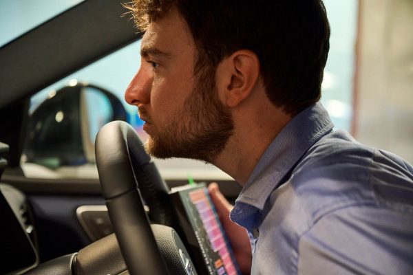 “Πρώτα από όλα, προσπαθώ να προσδιορίσω από πού προέρχεται η μυρωδιά”, λέει. “Προσπαθώ να το εντοπίσω και να το αξιολογήσω από την οπτική γωνία του χρήστη του οχήματος, όπως όταν ανοίγω το ντουλαπάκι του συνοδηγού ή τον καθρέφτη του αλεξήλιου. Τοποθετώ τον κορμό και το κεφάλι μου όπως θα έκαναν οι επιβάτες για να κερδίσω ακριβή εντύπωση”.