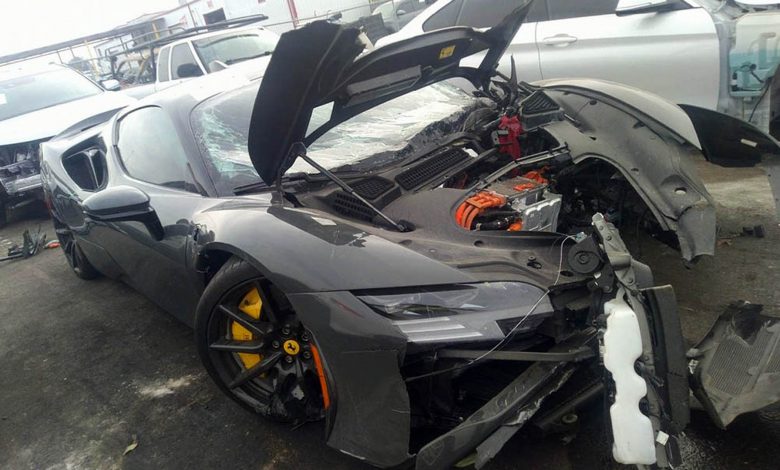 Μία γκρι SF 90 Stradale είχε εμπλοκή σε ένα σοβαρό ατύχημα προκαλώντας μεγάλη ζημιά στο μπροστινό της μέρος.