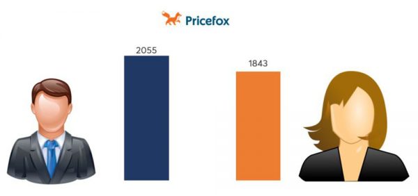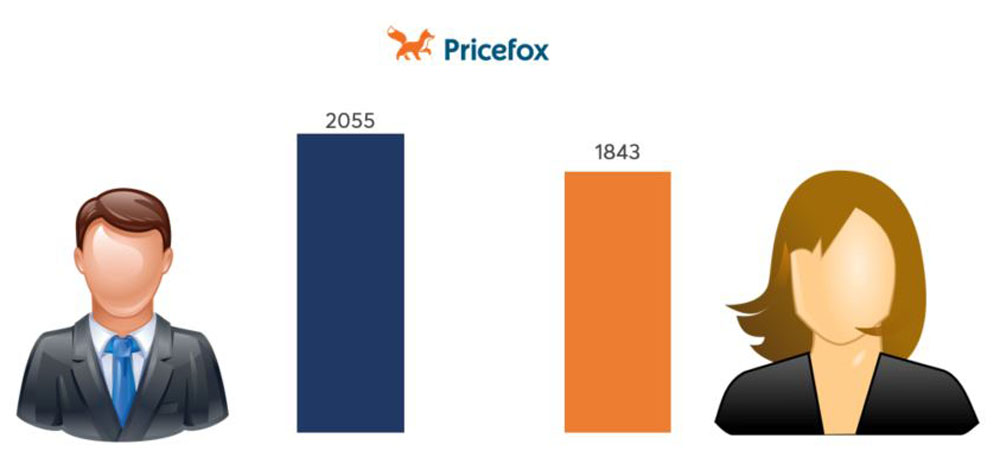 Στο παρακάτω γράφημα παρουσιάζεται η σύγκριση ανάμεσα στο μέσο μικτό μηνιαίο μισθό για άνδρες και γυναίκες στην Ελλάδα.