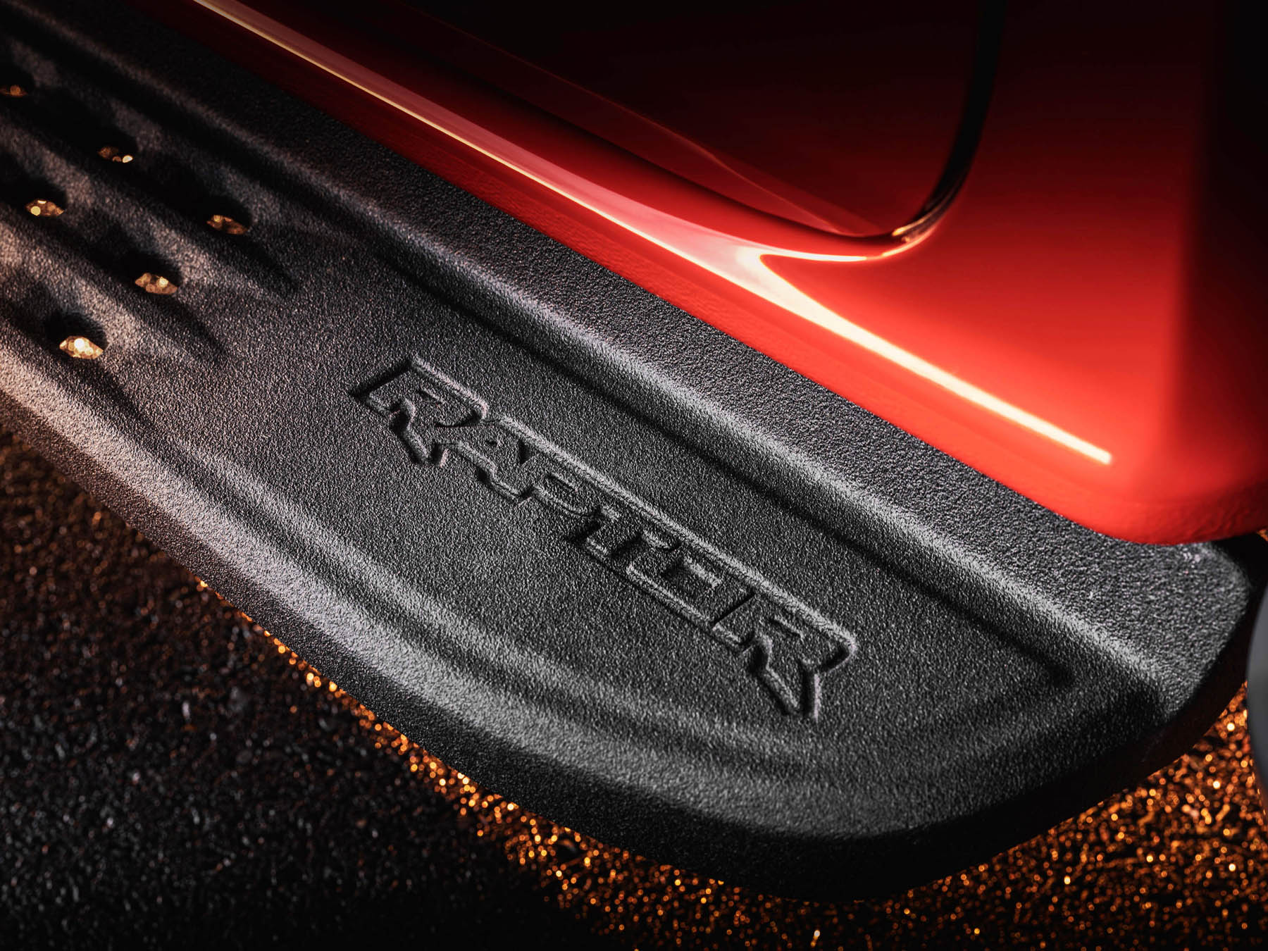 Στο πλαϊνό μέρος του αμαξώματος, τα προτεταμένα φτερά του νέου Ranger Raptor, τα οποία καλύπτουν τις εντυπωσιακές ζάντες αλουμινίου των 17 ιντσών που συνδυάζονται με αποκλειστικά all‑terrain ελαστικά υψηλών επιδόσεων σε διάσταση 285/70, ταιριάζουν απόλυτα τόσο με τις νέες, λειτουργικές εισαγωγές αέρα, όσο και με μία σειρά από αεροδυναμικά στοιχεία. Σίγουρα, τον δικό τους δυναμικό τόνο προσδίδουν και τα ανθεκτικά πλαϊνά σκαλοπάτια από χυτό αλουμίνιο, τα οποία έρχονται να αναδείξουν ακόμα περισσότερο την εμφάνιση του νέου pick-up αλλά και την πρακτικότητά του σε καθημερινή χρήση.