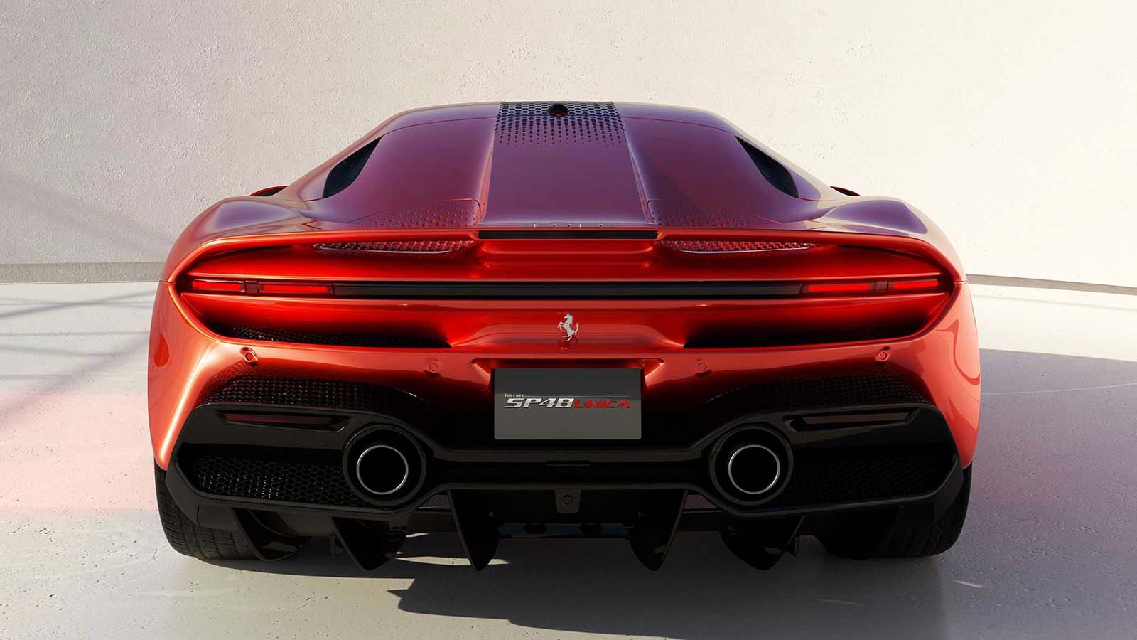 Το ενδιαφέρον στην SP48 Unica είναι πως παρόλο που βασίζεται στην F8 Tributo, σχεδιαστικά υπάρχουν πολλές διαφοροποιήσεις. Κυρίως στο εμπρός μέρος όπου έχουν χρησιμοποιηθεί τεχνικές 3D εκτύπωσης. Στο πίσω μέρος έχει αφαιρεθεί το παράθυρο και έχουν αντικατασταθεί τα φώτα με λεπτές LED μπάρες.