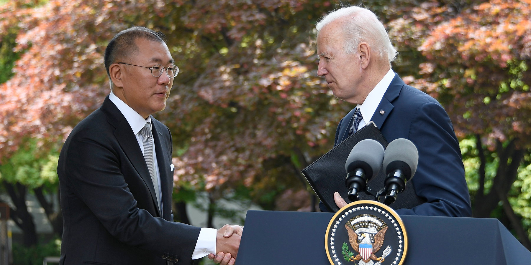 «Έχουμε διανύσει πολύ δρόμο και καταφέραμε σημαντικές επιτυχίες σε σύντομο χρονικό διάστημα, αλλά παράλληλα προετοιμαζόμαστε για το μέλλον» δήλωσε ο κ. Euisun Chung, Executive Chair του Ομίλου Hyundai Motor στα πλαίσια συνάντησής του με τον Πρόεδρο των ΗΠΑ κ. Joe Biden στη Σεούλ την Κυριακή 20 Μαΐου 2022.
