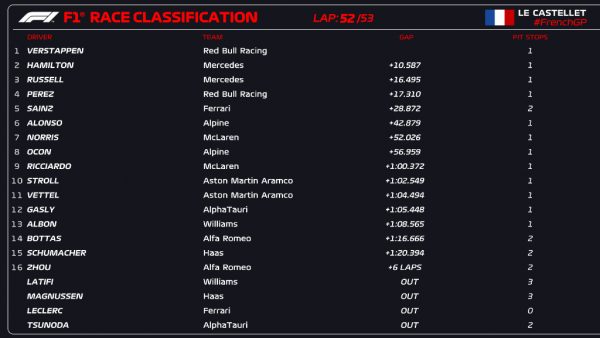 GP Γαλλίας: Εύκολη νίκη για τον Verstappen – Στο βάθρο οι Mercedes!