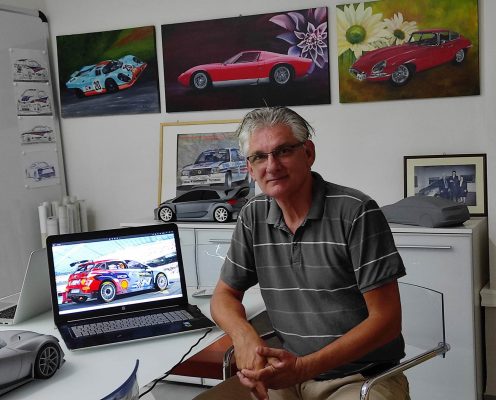 Στη συνέχεια το χρώμα αλλάζει στο κόκκινο της Coral A.E. – Shell Licensee, κάτι που δημιουργεί την αίσθηση της κίνησης ακόμη και όταν το αυτοκίνητο βρίσκεται σε ακινησία, ενώ όλα αυτά έπρεπε να τοποθετηθούν με τάξη, για να υπάρξει ένα όμορφο τελικό αποτέλεσμα. Για αυτόν το λόγο έβαλα στο καπό την «Τάγια» που συνεχίζει στον ουρανό και φτάνει μέχρι πίσω, ώστε να προσδίδει σχεδιαστικά στο σύνολο. Τελικά νομίζω πως τα καταφέραμε μαζί με τον εξαιρετικό συνεργάτη μου Γιάννη Μπουτκάρη, ο οποίος συνέβαλε σημαντικά στην εξέλιξη του σχεδίου, λόγω γνώσεων και ταλέντου στα γραφικά και στο κομπιούτερ, αλλά και της αγάπης που έχει τόσο στα αυτοκίνητα όσο και στα αγωνιστικά».