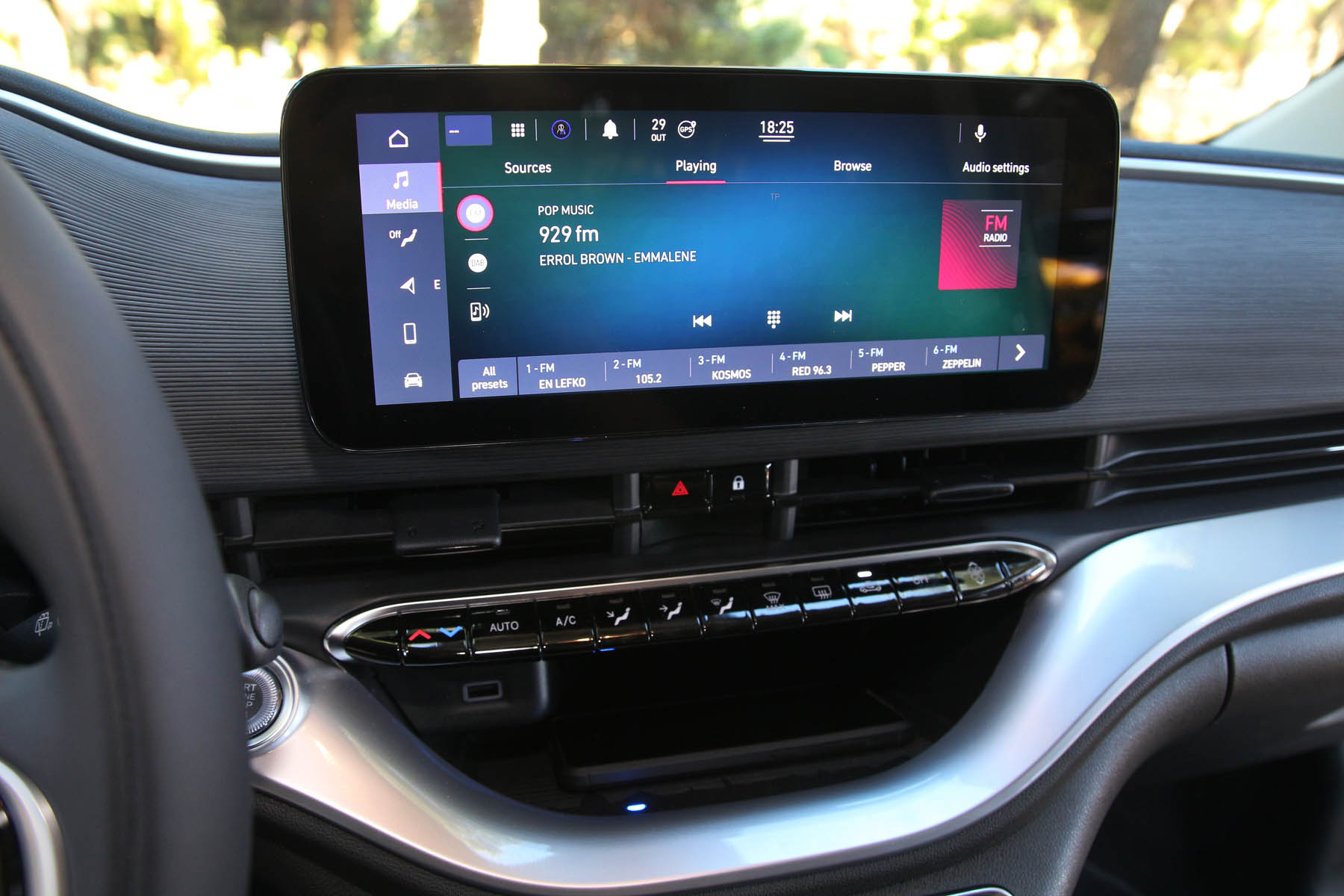 Στο εσωτερικό τα πράγματα δεν άλλαξαν ιδιαίτερα, με τις δύο ψηφιακές οθόνες να σε κερδίζουν με τα γραφικά και την αίσθηση ποιότητας, ειδικά αυτή της οθόνης πολυμέσων μεγέθους 10,25 ιντσών. Προσθέστε τους δεκάδες φυσικούς διακόπτες από κάτω και ακόμη δύο στην κεντρική κονσόλα (για την ένταση της μουσικής και το οδηγικό στιλ) και θα έχετε ένα πρακτικότατο πακέτο με μία έξυπνη κρυφή ποτηροθήκη ανάμεσα στα πόδια των εμπρός επιβατών, ή έναν μεγάλο χώρο για τσάντα ή οτιδήποτε άλλο. Σημαντική συμβολή γιατί τα 185 λίτρα του χώρου αποσκευών θα γεμίσουν εύκολα, ειδικά εφόσον κουβαλάμε μαζί μας την κομψή τσάντα με τα απαραίτητα καλώδια φόρτισης.
