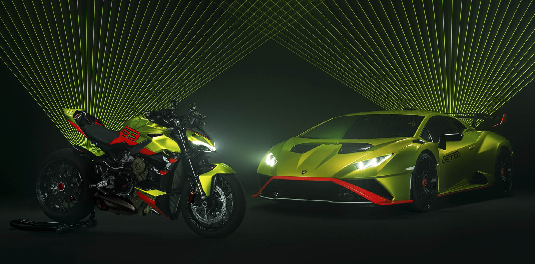 Θα κατασκευαστούν 630 μονάδες από την του Ducati Streetfighter V4 Lamborghini σε χρώμα Verde Citrea και Arancio Dac, ένας αποκλειστικός συνδυασμός που έχει δημιουργηθεί για την Huracán STO. Τα φτερά και οι δαγκάνες των φρένων της Brembo είναι επίσης χρωματισμένα σε Arancio Dac, με το όνομα της Brembo σε μαύρο χρώμα ώστε να κάνει έντονη αντίθεση. Η εξωτερική επικάλυψη του πηρουνιού της Öhlins είναι επίσης μαύρη.