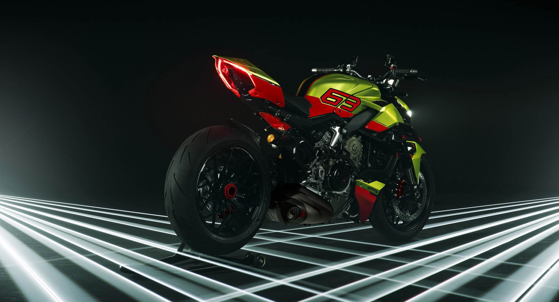 Διατηρώντας ως βάση την Panigale V4 S του 2023 και ενσωματώνοντας στοιχεία που χαρακτηρίζουν το DNA της Lamborghini, η Ducati δημιούργησε ένα σούπερ αποκλειστικό μοντέλο μειωμένης παραγωγής. Η μοτοσυκλέτα θα παραχθεί σε μια αριθμημένη σειρά που περιορίζεται στις 630 + 63 μονάδες και επαναδιατυπώνει τις σχεδιαστικές και τεχνολογικές ιδέες που εμφανίστηκαν και εντυπωσίασαν στη Lamborghini Huracán STO.