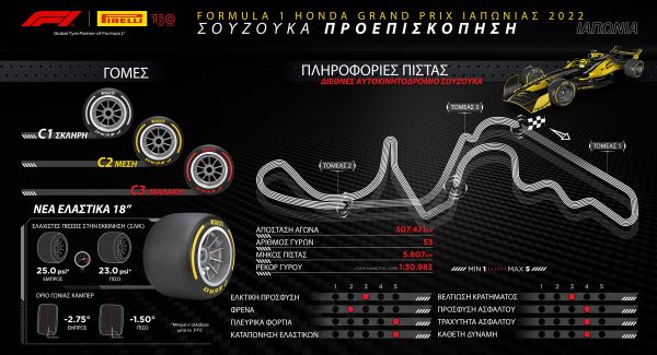 Mario Isola – Αγωνιστικός διευθυντής: «H μόνη πίστα που έχει σχήμα 8 οπότε οι απαιτήσεις από τα ελαστικά είναι ομοιόμορφα ζυγισμένες. Αν ρωτήσει κανείς τους οδηγούς για το ποια είναι η αγαπημένη τους πίστα, η Σουζούκα βρίσκεται πάντοτε ψηλά σ’ αυτή τη λίστα: περιέχει απαιτητικές στροφές που δεν έχουν όμοιο, όπως η 130R και η Spoon. Επίσης έχει μεγάλη ιστορία ενώ οι απίστευτοι φίλαθλοι δημιουργούν μια μοναδική ατμόσφαιρα. Διαθέτει ίδιο αριθμό αριστερών και δεξιών στροφών καθώς έχει μια μοναδική χάραξη στο σχήμα του «8». Αυτό έχει ως αποτέλεσμα οι φορτίσεις που προκαλεί να είναι ισορροπημένες. Τα ενεργειακά φορτία που μεταφέρονται μέσω των ελαστικών είναι από τα μεγαλύτερα της χρονιάς. Η χάραξη της πίστας μας υποχρέωσε να επιλέξουμε τις τρεις πιο σκληρές γόμες της γκάμας μας καθώς τα ελαστικά δέχονται μεγάλη πίεση. Η τελευταία γενιά μονοθεσίων είναι η πιο βαριά στην ιστορία και τα όρια απόδοσης διαρκώς ανεβαίνουν. Οπότε η πρόκληση είναι μεγαλύτερη από ποτέ. Μια καινοτομία φέτος είναι ότι θα δοκιμάσουμε πρωτότυπα ελαστικά του 2023 σε μια διευρυμένη περίοδο ελεύθερων δοκιμών την Παρασκευή το απόγευμα, καθώς απομένουν μόνο οι τελευταίες λεπτομέρειες για την διαμόρφωση της γκάμας της επόμενης χρονιάς ενόσω πλησιάζει το τέλος της φετινής».