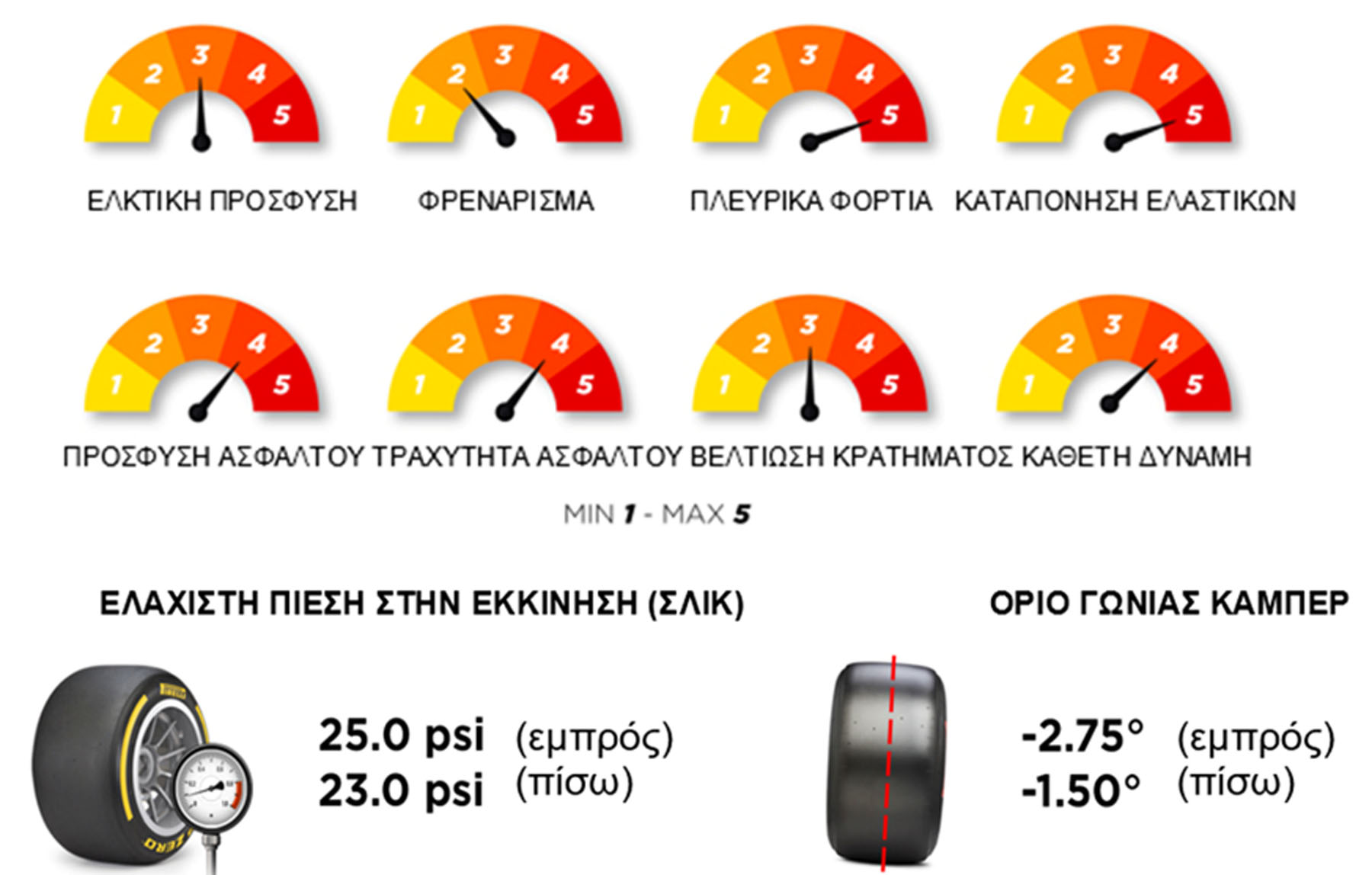 Οι τρεις πιο σκληρές γόμες επέστρεψαν στην Ιαπωνία: η C1 θα είναι η P Zero λευκή/σκληρή, η C2 θα είναι η P Zero κίτρινη/μέση και η C3 θα είναι η P Zero κόκκινη/μαλακή. Αυτή θα είναι και η τελευταία εμφάνιση της πιο σκληρής γόμας C1 φέτος.