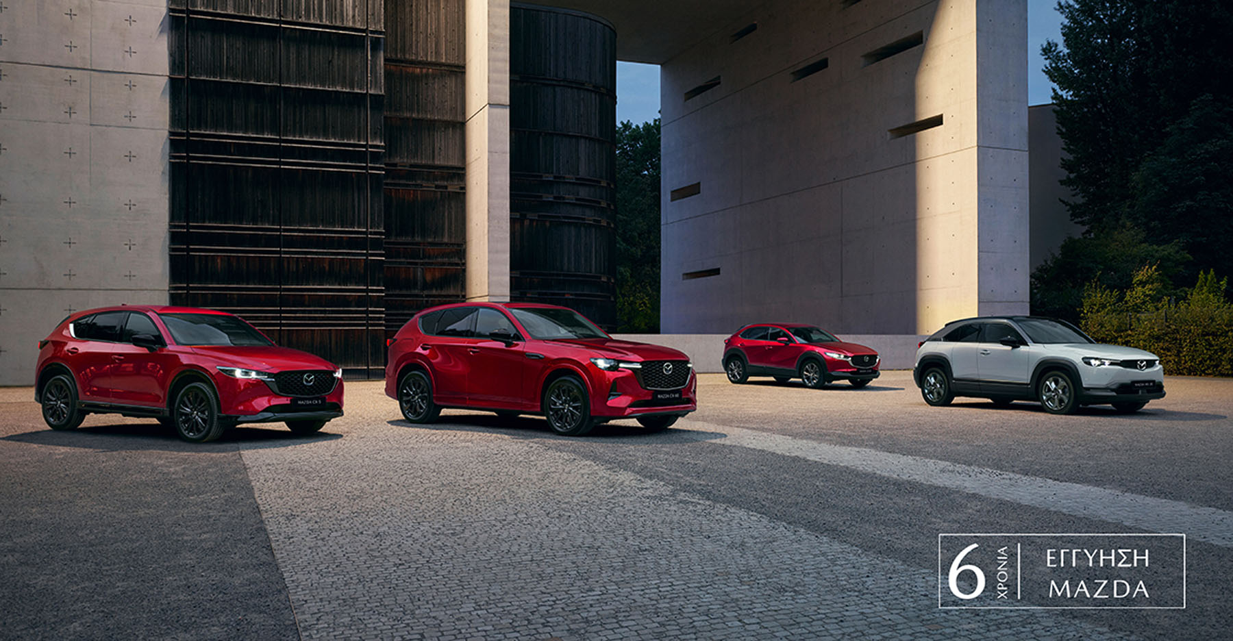 Η Mazda επεκτείνει την εργοστασιακή εγγύηση από τα 3 στα 6 χρόνια ή 150.000 χλμ. Το νέο πρόγραμμα εργοστασιακής ισχύει για όλα τα νέα Mazda που έχουν ταξινομηθεί από την 1η Σεπτεμβρίου 2022.