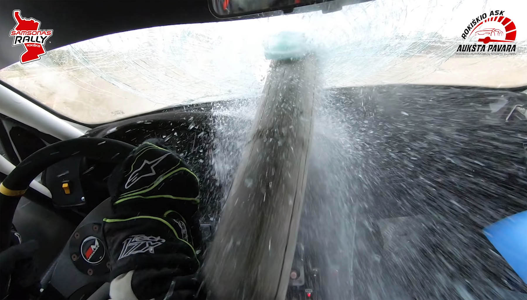 Άγιο είχαν οδηγός και συνοδηγός σε μία αγωνιστική BMW όταν το αυτοκίνητο βγήκε εκτός δρόμου και ένας πάσσαλος καρφώθηκε ανάμεσα τους.