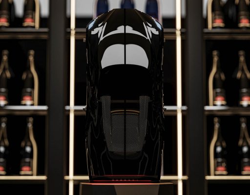 Γύρω από το μπουκάλι της ήδη πανάκριβης σαμπάνιας της Champagne Carbon η Bugatti δημιουργεί μία θήκη από 314 ανεξάρτητα κομμάτια από carbon fiber.