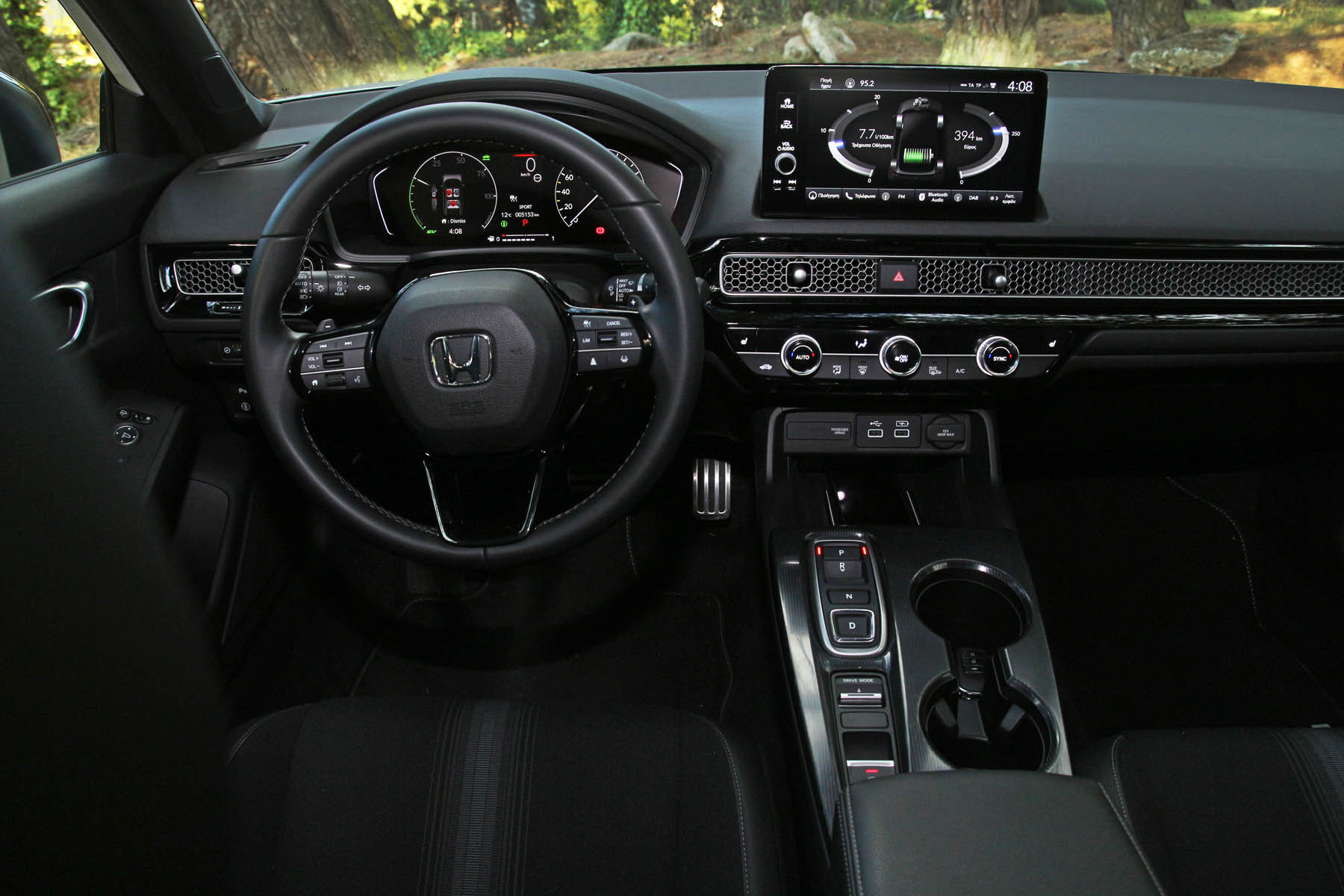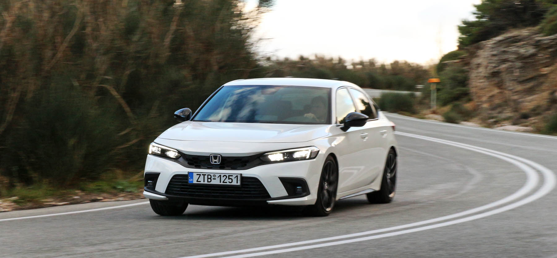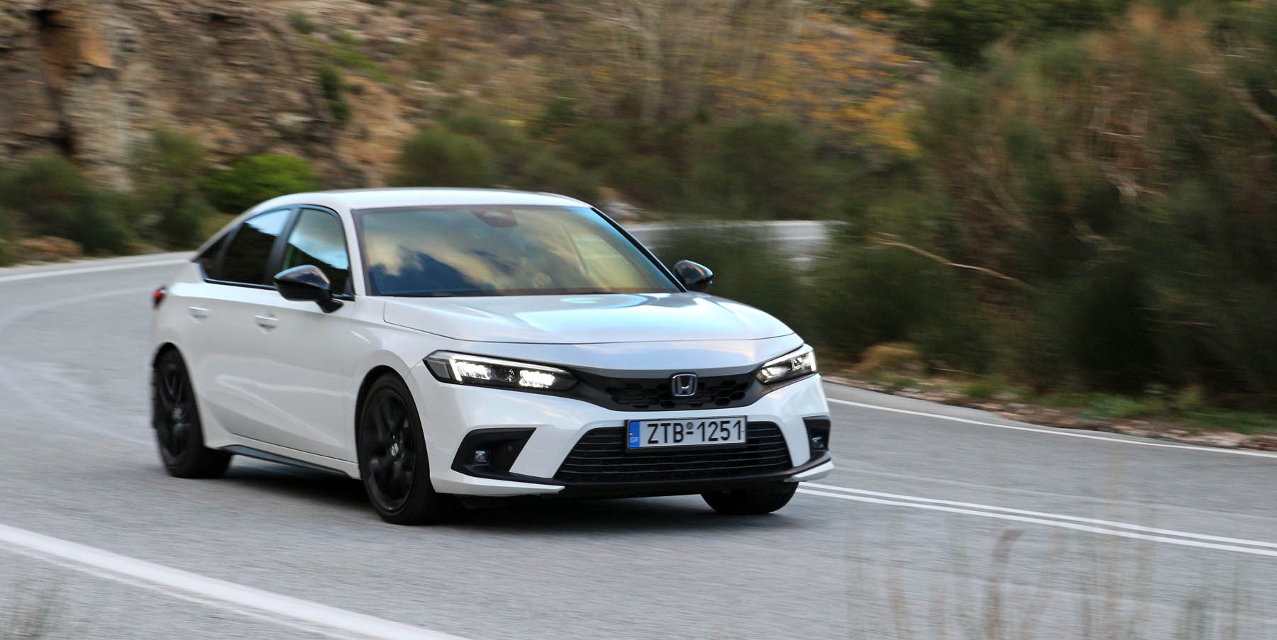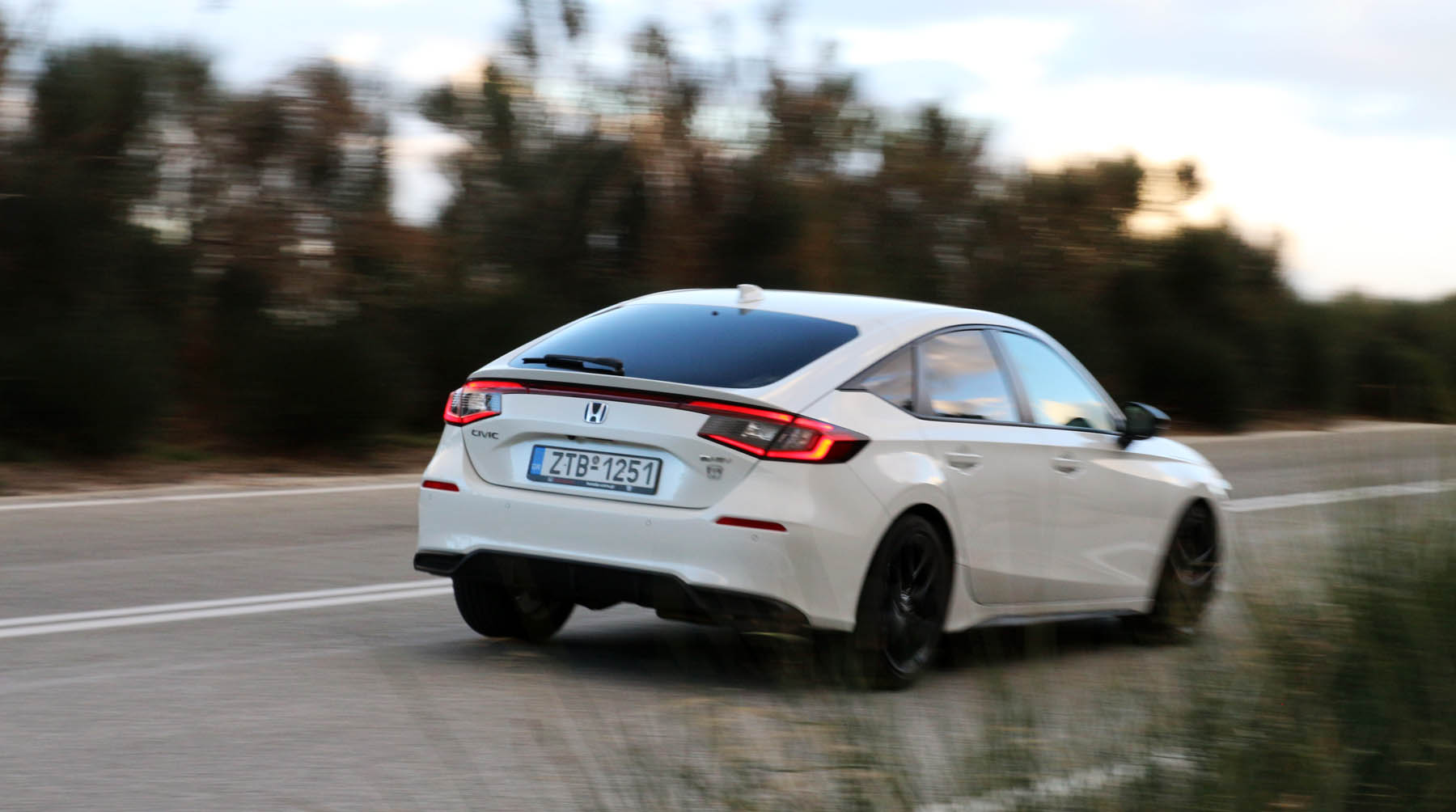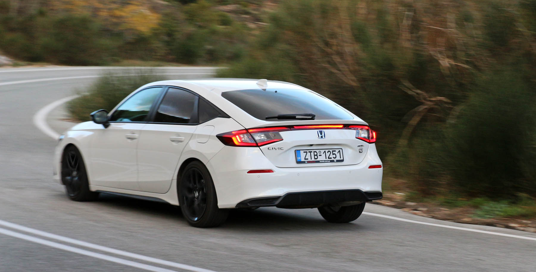 Ειδικά στην επιλογή Sport (υπάρχουν και οι Normal/Economy) οι αλλαγές του αυτόματου e CVT κιβωτίου είναι άμεσες και η σπορ ηχητική χροιά είναι τέτοια που να σε κάνει να ευχαριστιέσαι την οδήγηση. Το Civic e:HEV αποδίδει 184 ίππους και 315 Nm ροπή (αυτή του ηλεκτρικού μοτέρ), με τα 0-100 χλμ./ώρα να έρχονται σε 7,8 δευτερόλεπτα και την τελική ταχύτητα να περιορίζεται στα 180 χλμ./ώρα ηλεκτρονικά.