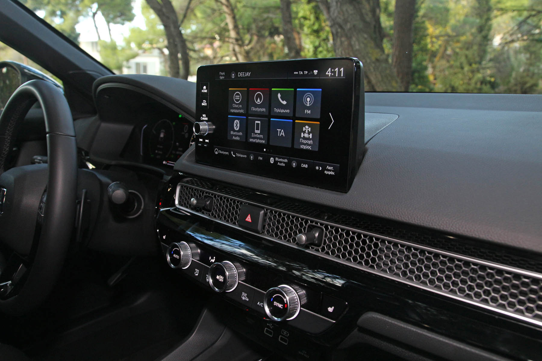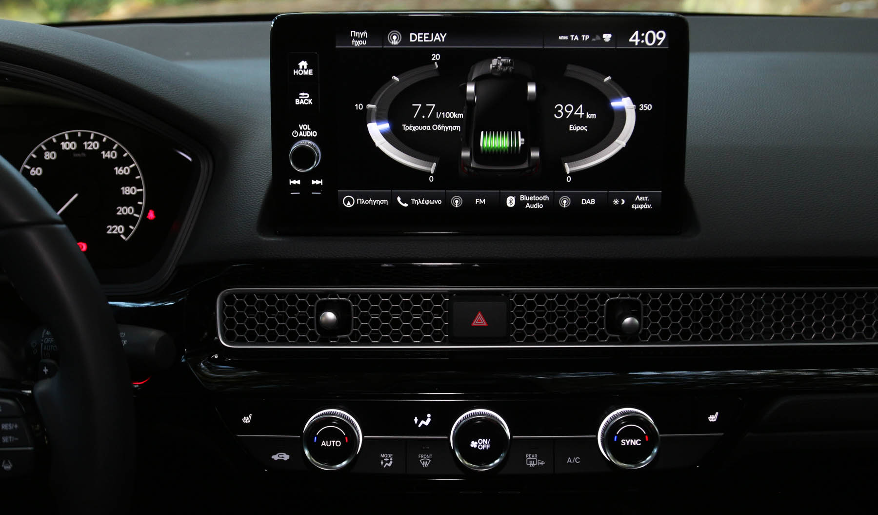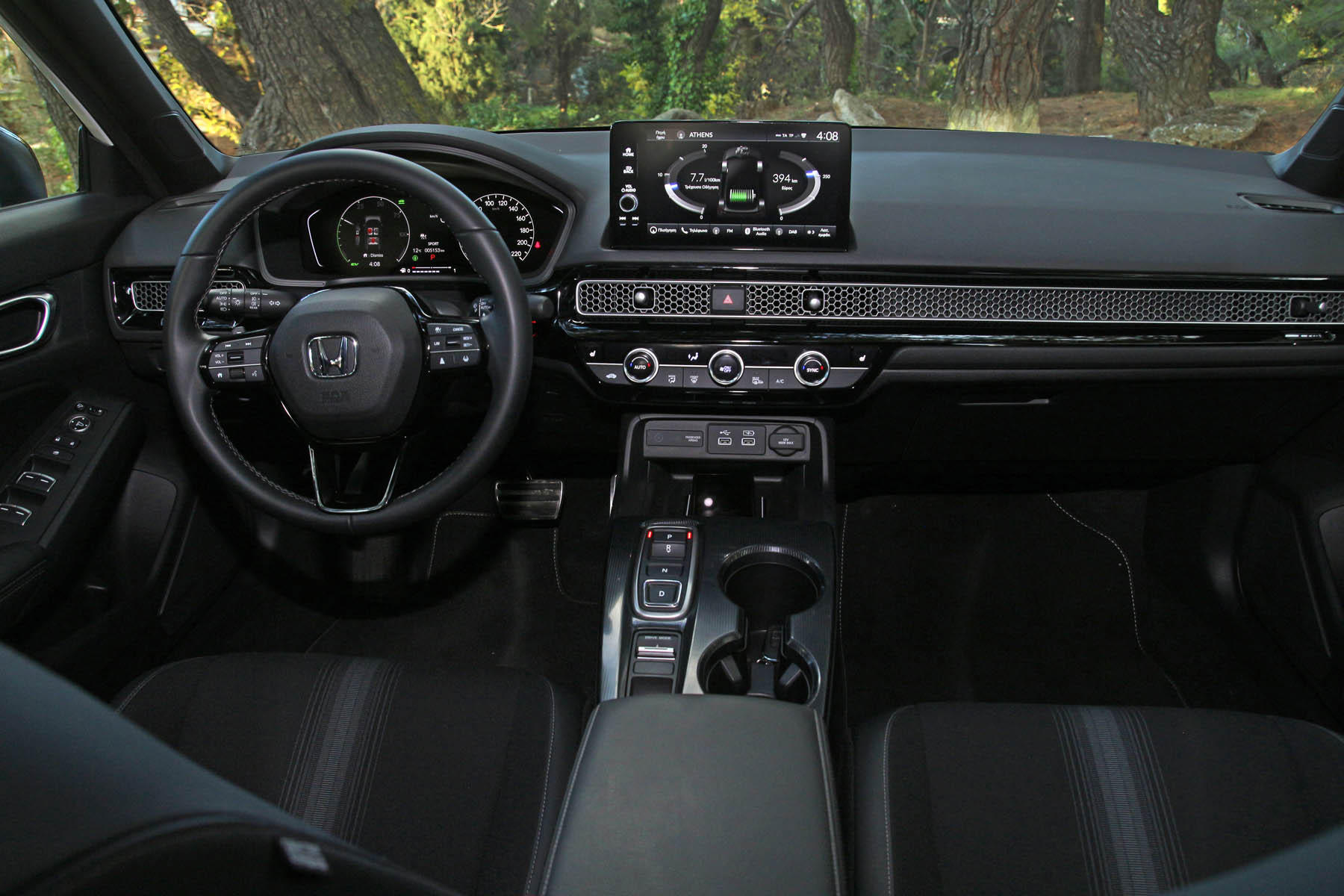 Οι αριθμοί αυτοί είναι εξαιρετικοί για ένα μοντέλο με βάρος που ξεπερνά τα 1.500 κιλά και γίνονται ακόμη πιο εντυπωσιακοί όταν βλέπεις ότι η κατανάλωση καυσίμου δεν ξεπερνά τα 6,4 λίτρα/100 χλμ. όσο και αν το πιέσεις. Μέσα στην πόλη και με ελαφρύ πόδι θα δεις το οικονομόμετρο να καμαρώνει για τα 5 με 5,5 λίτρα/100 χλμ. Αυτό συμβαίνει γιατί τον περισσότερο χρόνο το Civic λειτουργεί με τον ηλεκτροκινητήρα, ενώ σε καταστάσεις απότομης επιτάχυνσης ή με περισσότερα από 90 χλμ./ώρα τότε ο βενζινοκινητήρας αντί να φορτίζει την μπαταρία, λειτουργεί με πιο… πατροπαράδοτο τρόπο.