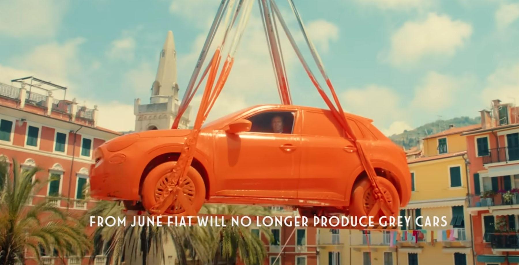 Ένα ιδιαίτερο βίντεο δημιουργήθηκε για να προωθήσει αυτό το μήνυμα, με το αυτοκίνητο της Fiat και τον πρόεδρο της εταιρίας, Olivier Francois, να βυθίζονται σε έναν κάδο με πορτοκαλί χρώμα.