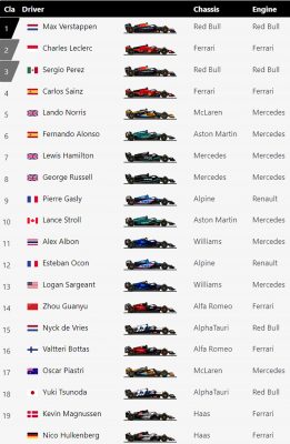 Οι Ferrari κυνηγούσαν τον Verstappen με τον Hamilton να βρίσκεται σε καλή μέρα αλλά να παίρνει ποινή 5 δλ. για υπέρβαση ορίων πίστας. Αντίθετα, ο Perez δεν ήταν και στα καλύτερά του. Βροχή έπεφταν οι ποινές 5 δευτερολέπτων για τα όρια της πίστας.