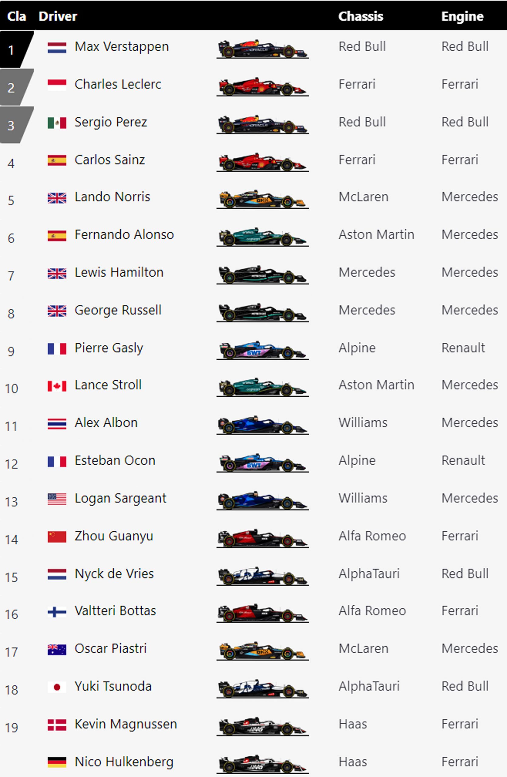 Our running order as we move past the halfway mark!#AustrianGP #F1 pic.twitter.com/U4sY1QO54c