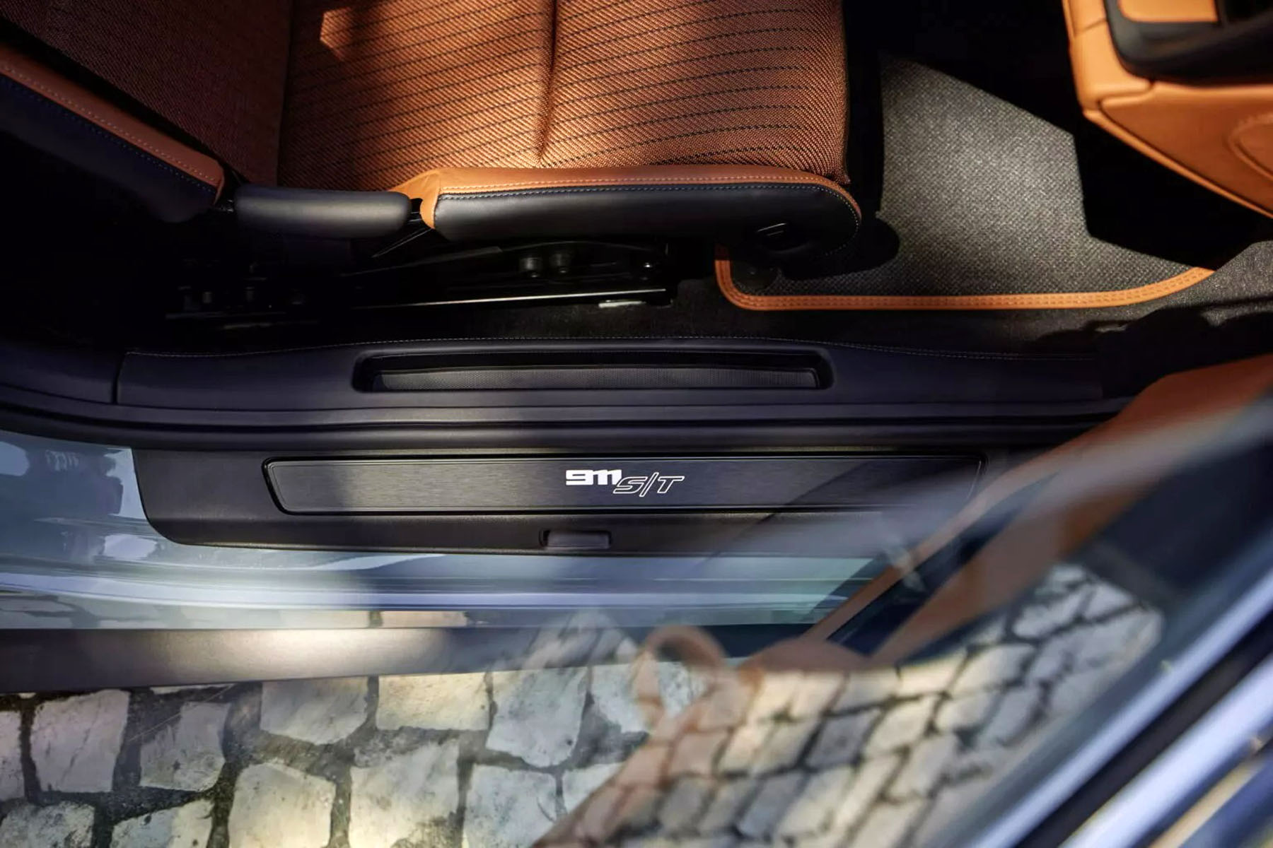 Το εσωτερικό της 911 S/T έχει επίσης ιστορικές αναφορές με στάνταρ μπάκετ καθίσματα από ανθρακονήματα, φινιρισμένα με ύφασμα και διαθέτουν ρετρό ρίγες και ραφές. Επιπλέον, όλα τα σήματα «911 S/T» είναι σε χρυσαφί.