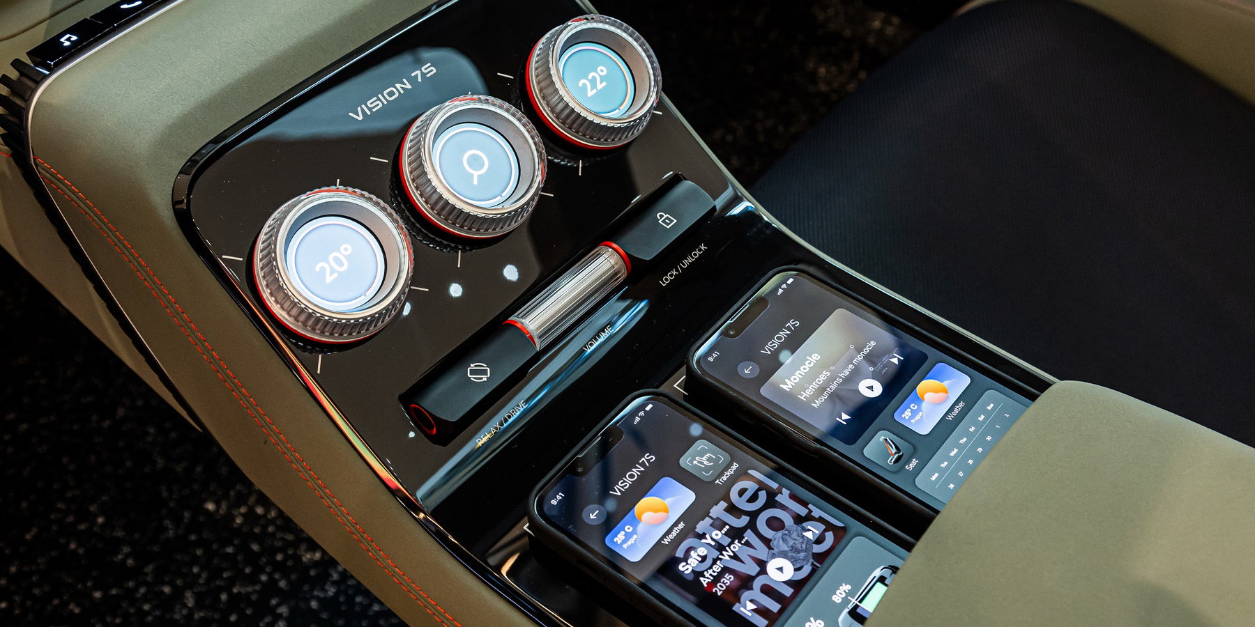 Στο εσωτερικό, το Vision 7S διαθέτει επτά καθίσματα, με τα δύο μπροστινά να μπορούν να περιστρέφονται και να ανακλινονται, προσφέροντας δύο διαφορετικές διαμορφώσεις, την “Drive” και την “Relax”. Επίσης, ξεχωρίζει η θέση του παιδικού καθίσματος στην προέκταση της κεντρικής κονσόλας.