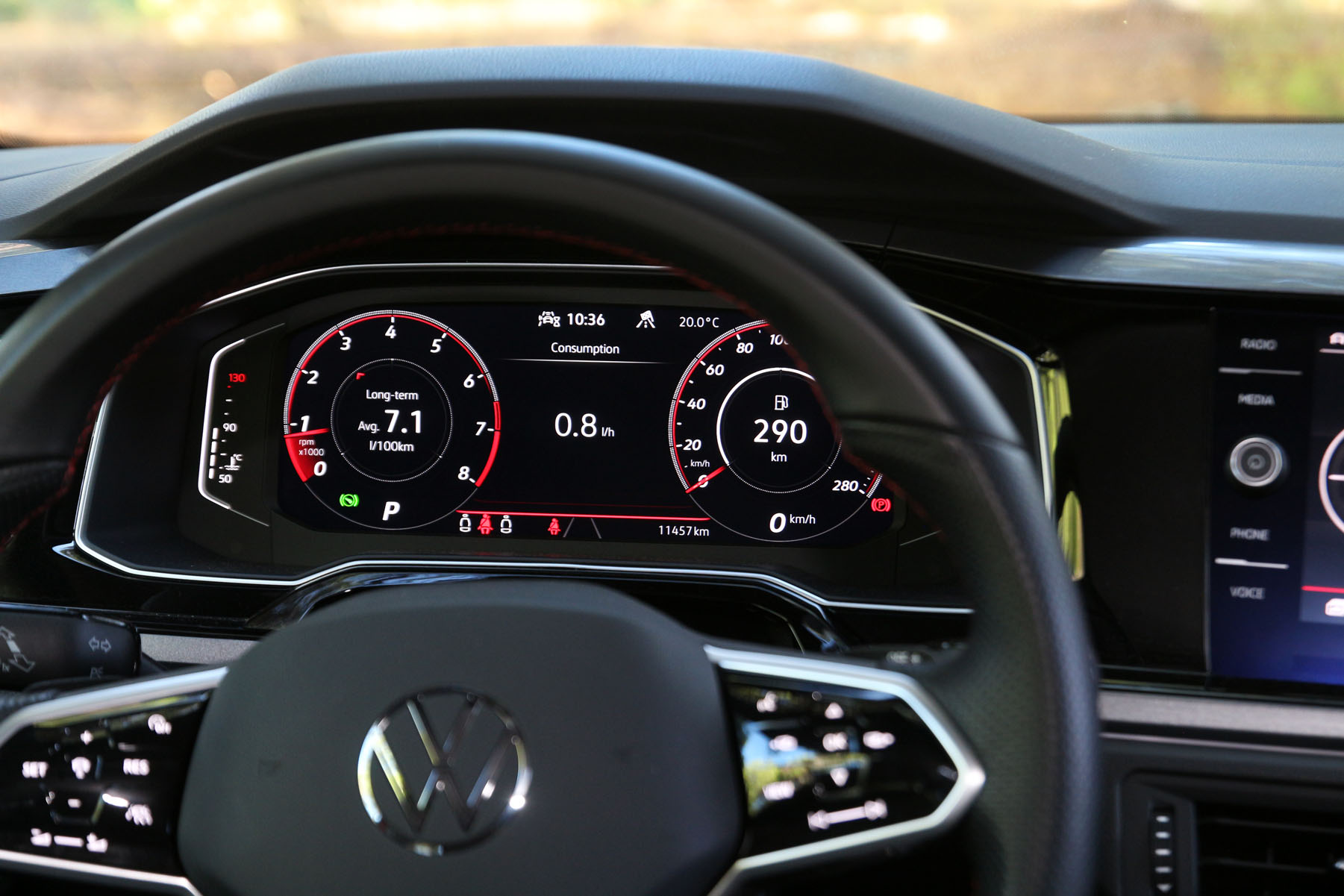 Τίποτα πέρα από το κόκκινο πλαίσιο στο τιμόνι και το GTI logo, δεν προδίδει το τι μέλλεται να ακολουθήσει. Ο βρυχηθμός του δίλιτρου μοτέρ, τα πρώτα μέτρα με τον επιλογέα στο sport ή το παιχνίδι με τα puddles. Μικρές χαρές που σου θυμίζουν πως ο κινητήρας εσωτερικής καύσης είναι ακόμα εδώ, έστω και αν έχει ημερομηνία λήξης.