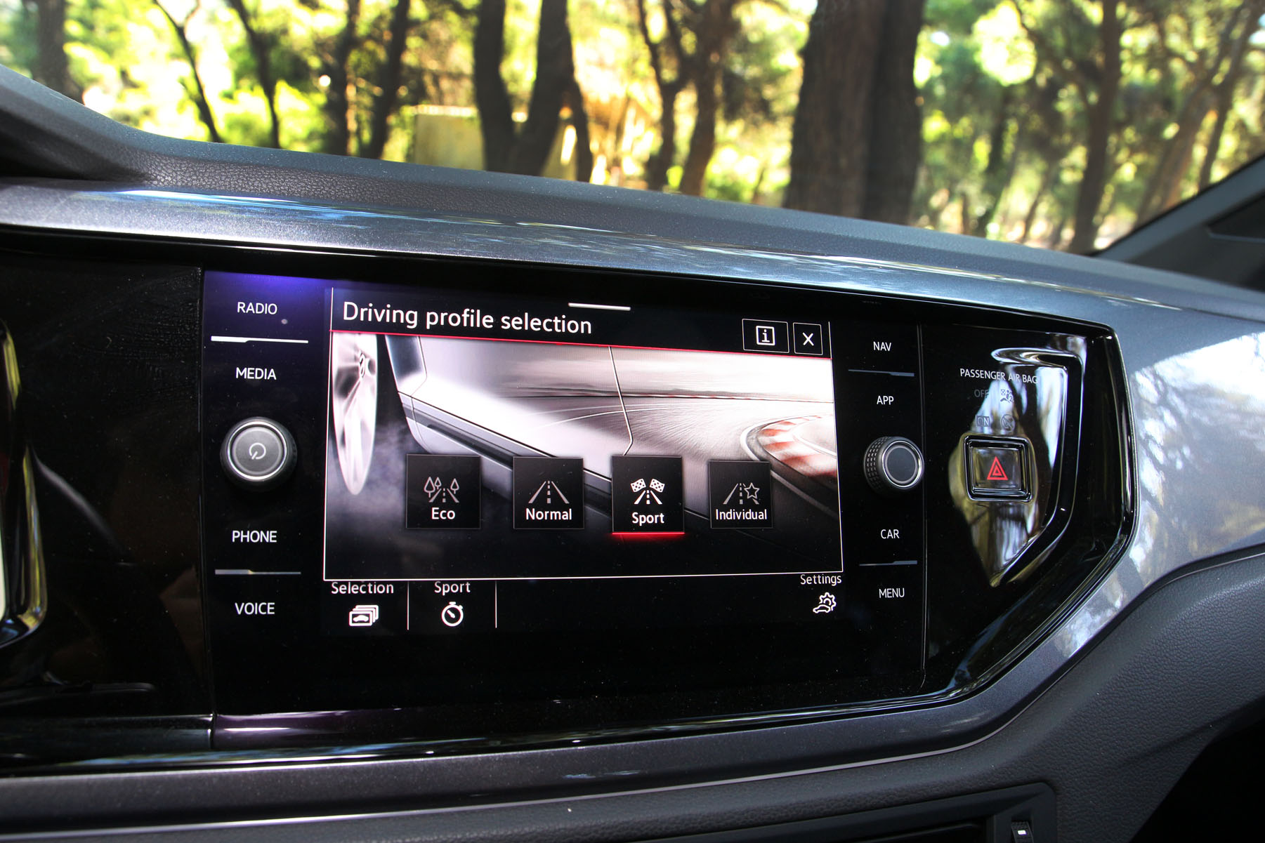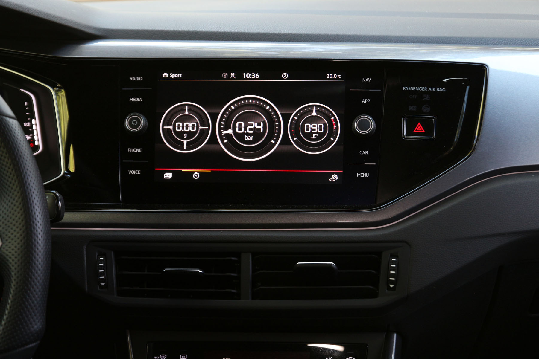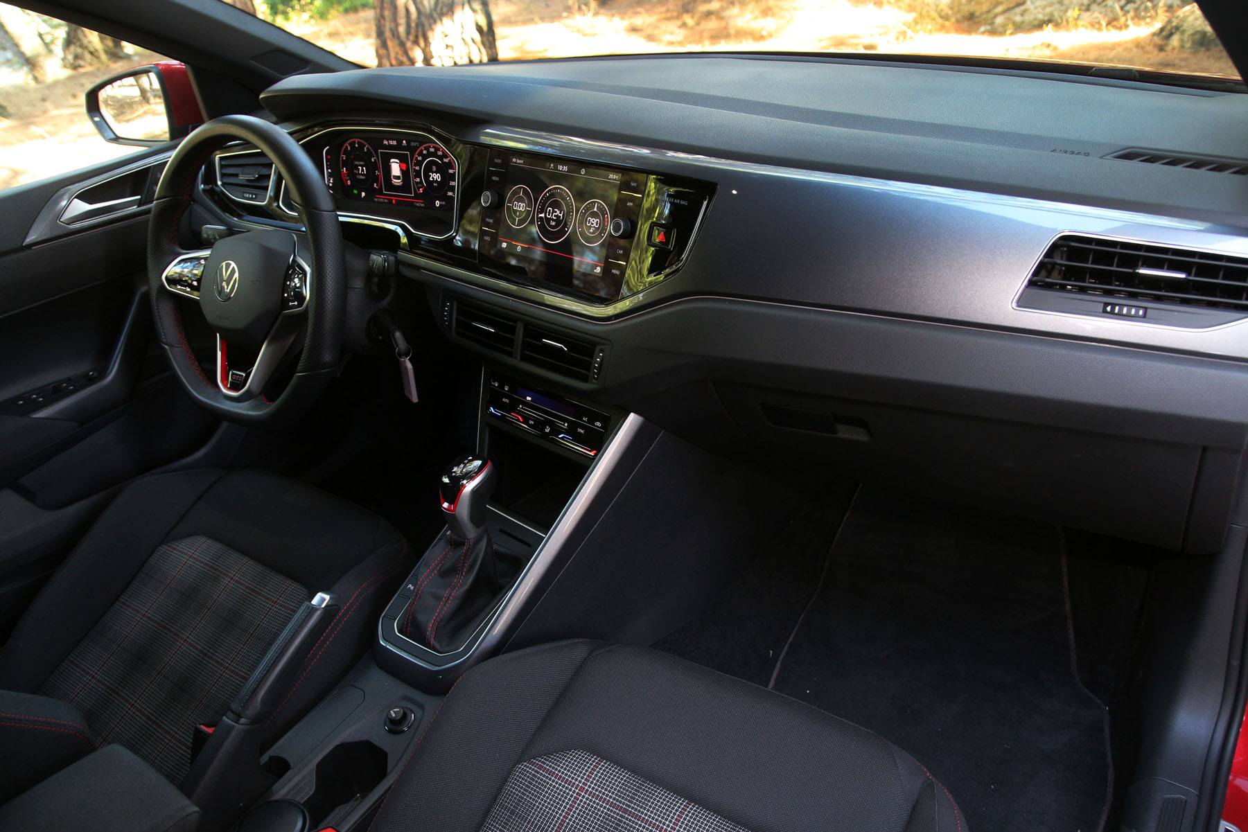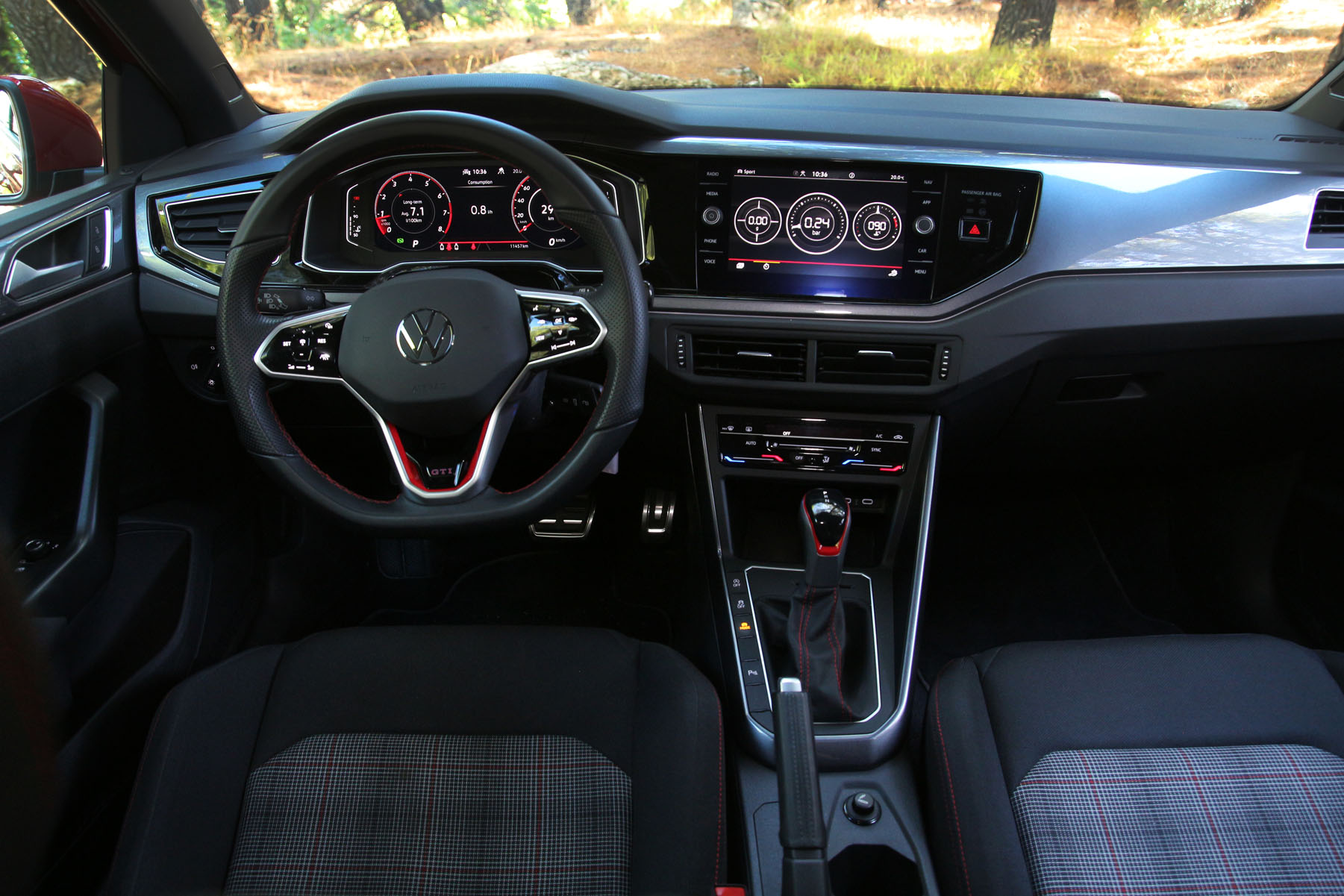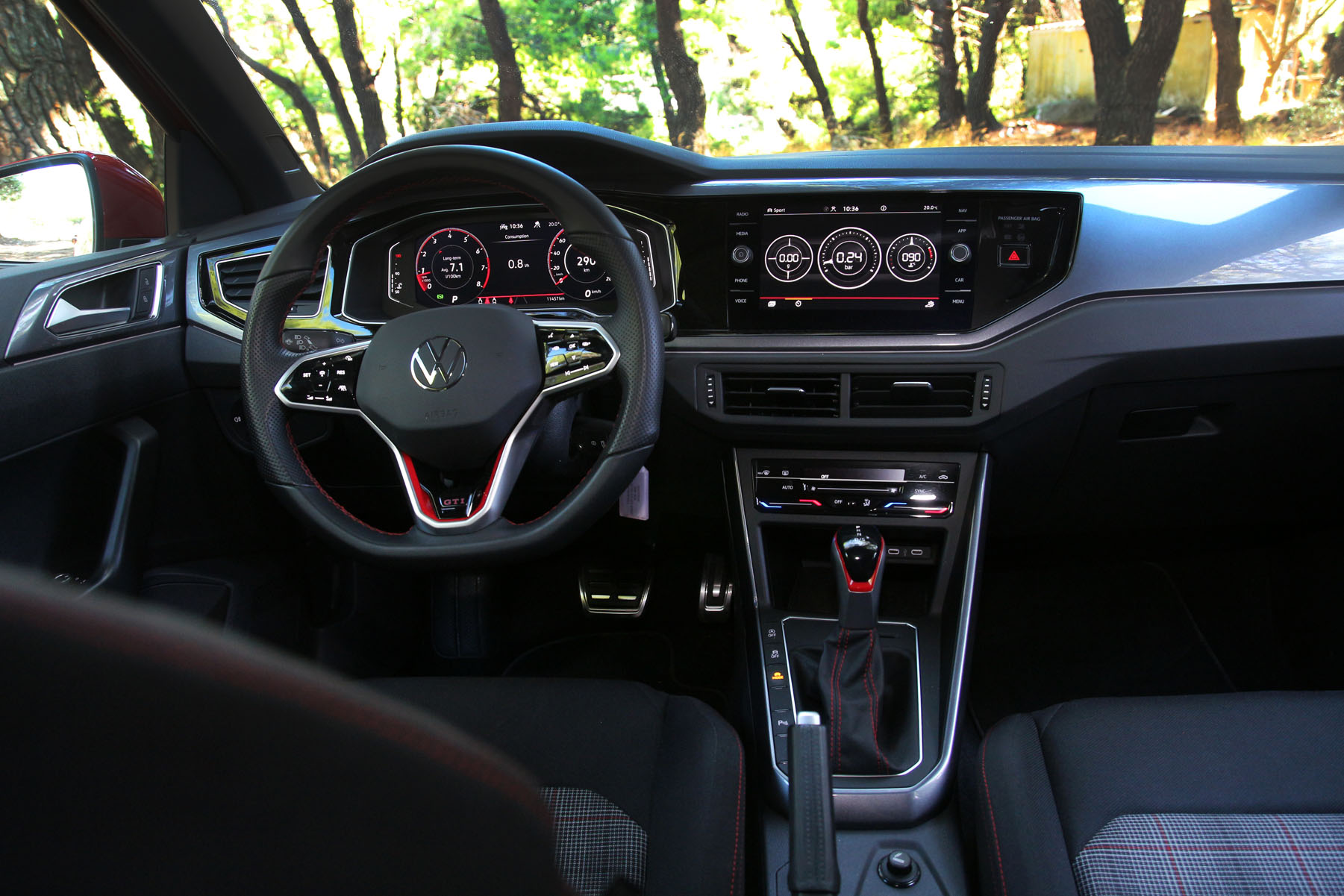 Αυτό βέβαια είναι κάτι που το θέλει η VW καθώς συμβαίνει και με το αντίστοιχο Golf εδώ και πολλές γενιές, ενώ αυτή η τάση εκπολιτισμού περνά και στο εσωτερικό του ανανεωμένου μοντέλου. Εκεί που πρώτα τραβούν το βλέμμα τα καρό καθίσματα της έκδοσης δοκιμής μας και στη συνέχεια οι δύο ψηφιακές οθόνες. Σε αυτές καλείσαι που να βρεις την ένδειξη των «G», των Bar και της θερμοκρασίας λαδιού για να μπεις στο κλίμα για τα καλά, ενώ και όλες οι υπόλοιπες λειτουργίες περνούν μέσα από τον ψηφιακό κόσμο του Polo.