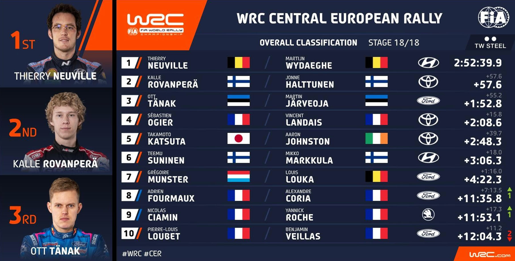 #WRC 🇩🇪🇨🇿🇦🇹 @thierryneuville leads @cerwrc and victory is within reach as we gear up for the Power Stage showdown! #HMSGOfficial #ForCraig #CER pic.twitter.com/Lel9A6rNLO