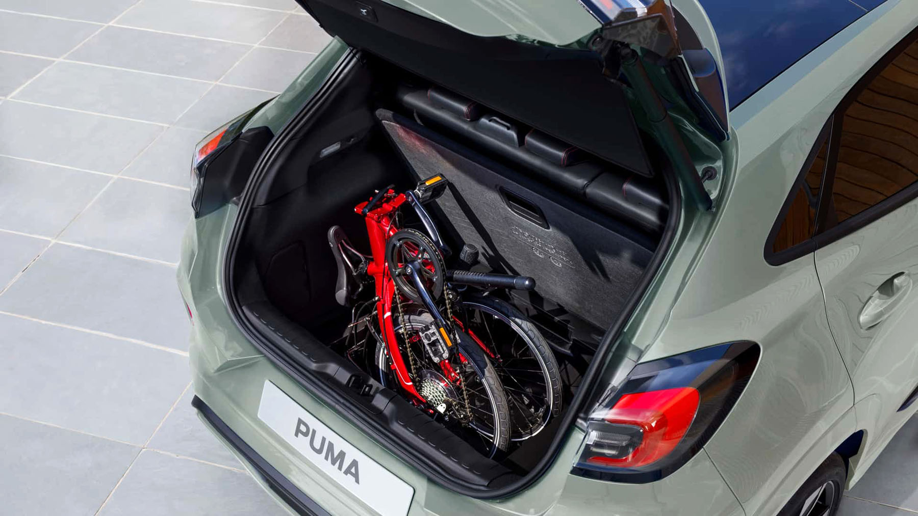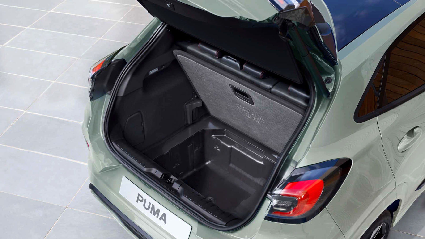 Η πρακτικότητα του νέου Ford Puma υπογραμμίζεται από το καινοτόμο MegaBox, το οποίο προσφέρει επιπλέον 80 λίτρα αποθηκευτικού χώρου στο δάπεδο του χώρου αποσκευών – αυτό σημαίνει ότι αντικείμενα ύψους έως και περίπου 115 cm μπορούν να αποθηκευτούν όρθια. Με το MegaBox ο χώρος αποσκευών έχει χωρητικότητα 456 λίτρα με τα πίσω καθίσματα στη θέση τους. Και όλα αυτά σε ένα όχημα με μήκος μόλις 4,2 μέτρα. Ως εκ τούτου, το Ford Puma καλύπτει άνετα τις ανάγκες των οικογενειακών διακοπών και άλλων αποδράσεων με ένα πορτμπαγκάζ ικανό να γεμίσει με αποσκευές ή σπορ εξοπλισμό.