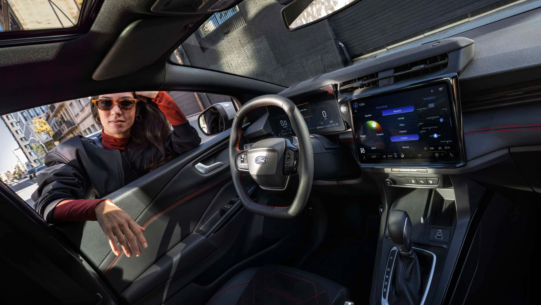 Χάρη στη μονόχρωμη απόχρωση της καμπίνας, το εσωτερικό του νέου Ford Puma αποπνέει μια απέριττη γοητεία. Οι επιφάνειες αγκαλιάζουν τους επιβάτες και εκτείνονται απρόσκοπτα από τη μια πόρτα στην άλλη, ενσωματώνοντας έναν πίνακα οργάνων με λεπτούς αεραγωγούς, ένα σμιλεμένο σε σχεδίαση, τρισδιάστατο soundbar, ένα ολοκαίνουργιο σπορ τιμόνι με δύο ακτίνες και επίπεδο κάτω τμήμα, καθώς και δύο εντυπωσιακές ψηφιακές οθόνες.