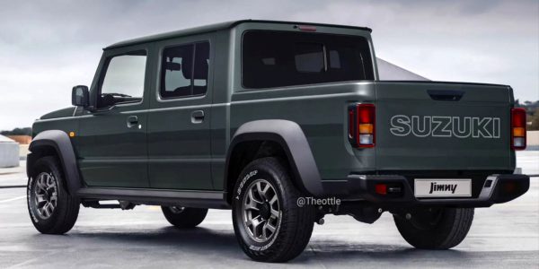 Οι ψηφιακές απεικονίσεις δείχνουν έντονα στοιχεία που αντλούν έμπνευση από το Jeep Gladiator, με μεγάλα γράμματα Suzuki στην πίσω πόρτα και έντονα πίσω φώτα που θυμίζουν το αμερικανικό μοντέλο.