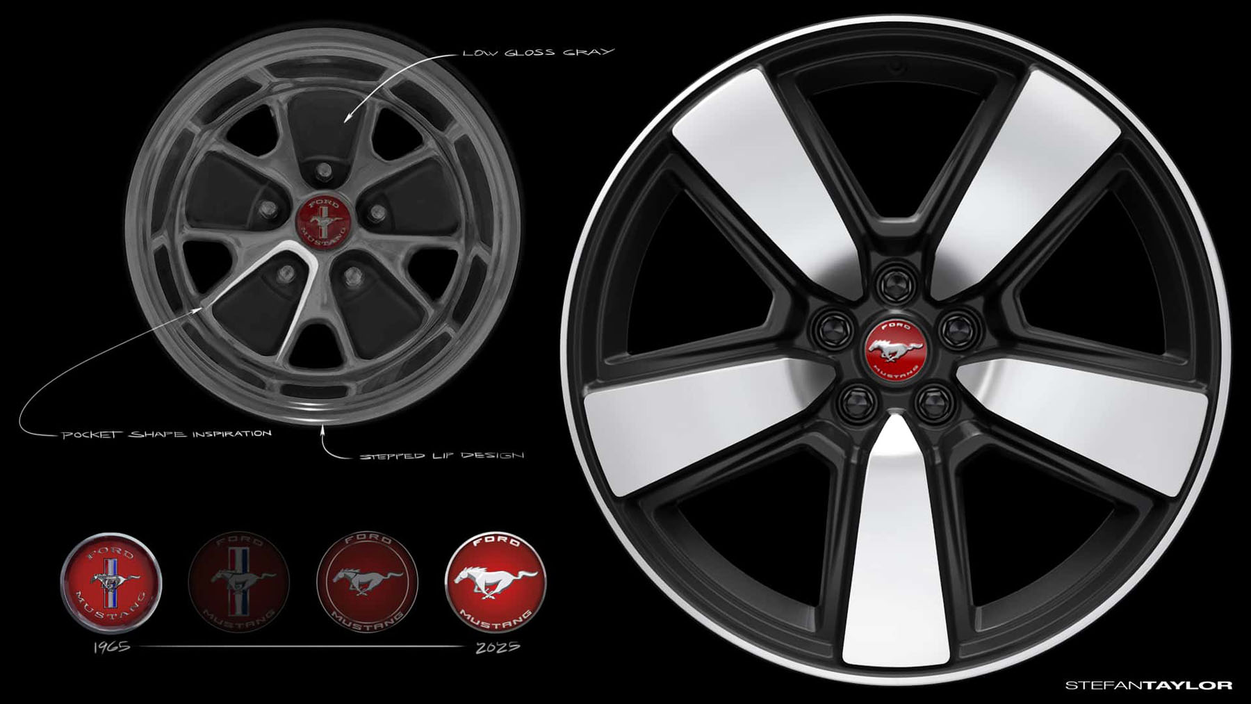 Μάλιστα, εάν το αμάξωμα είναι βαμμένο κόκκινο ή μπλε, η ειδική Mustang διαθέτει ασημί καπάκια εξωτερικών καθρεπτών. Στα λευκά αυτοκίνητα, έχουν το ίδιο χρώμα με το αμάξωμα.