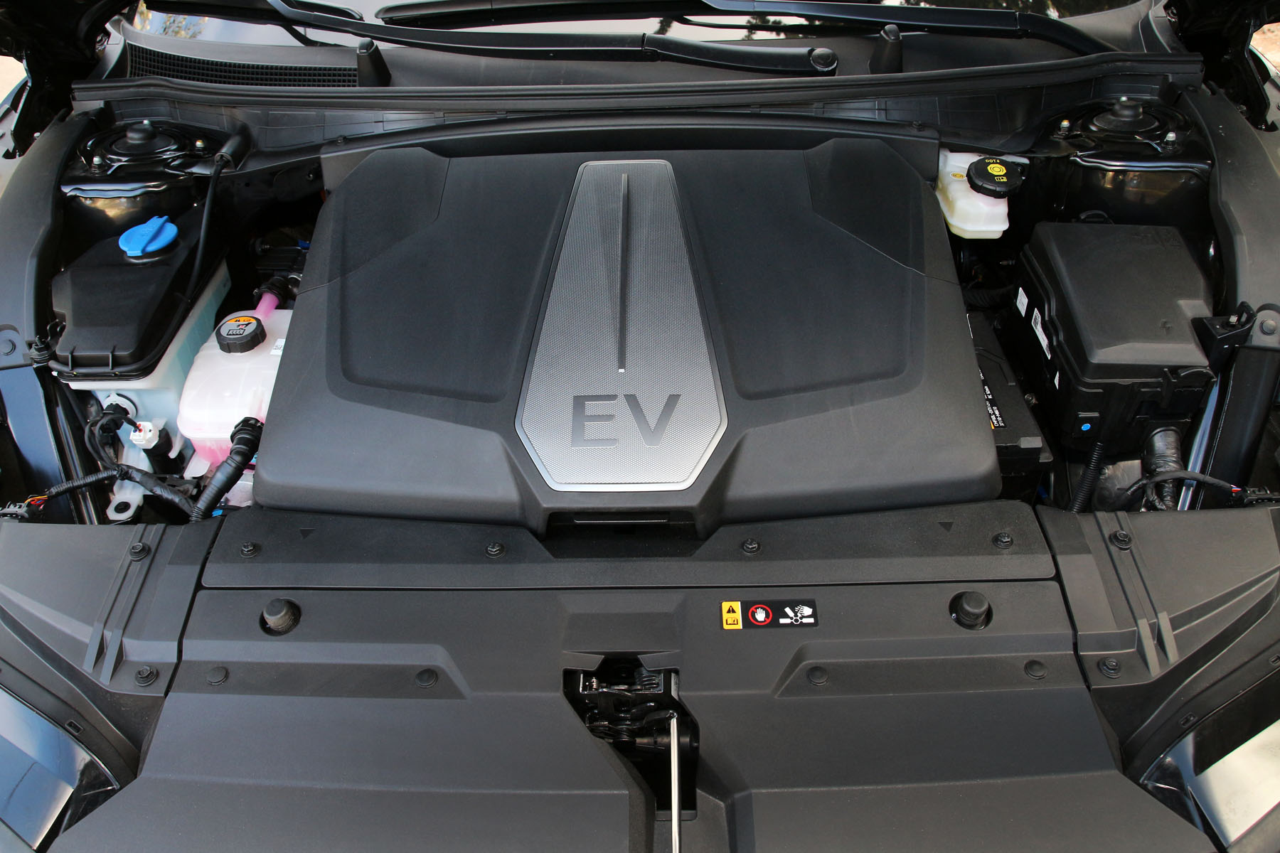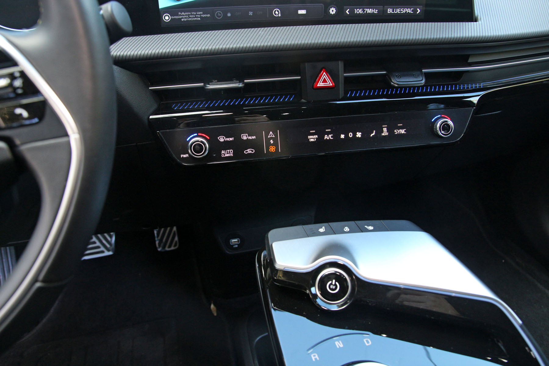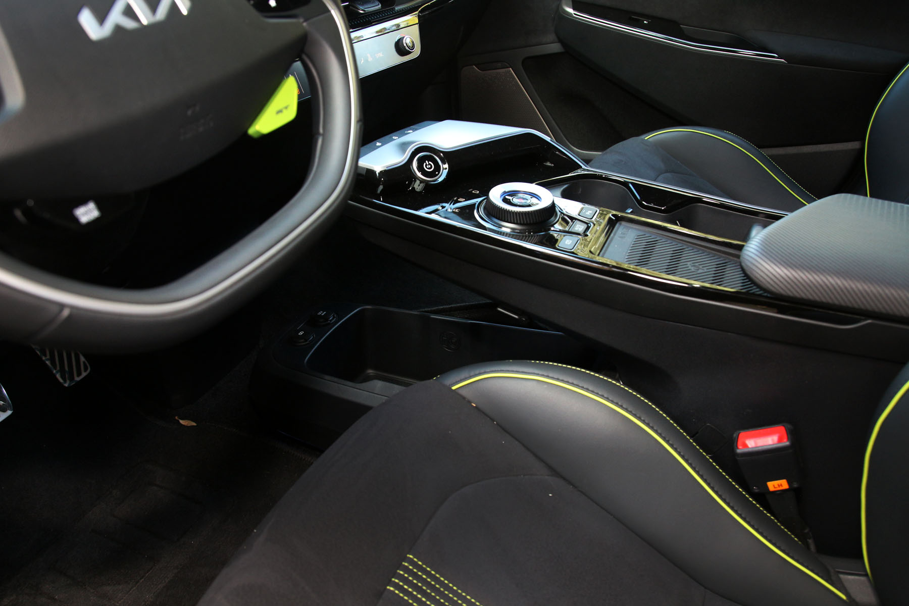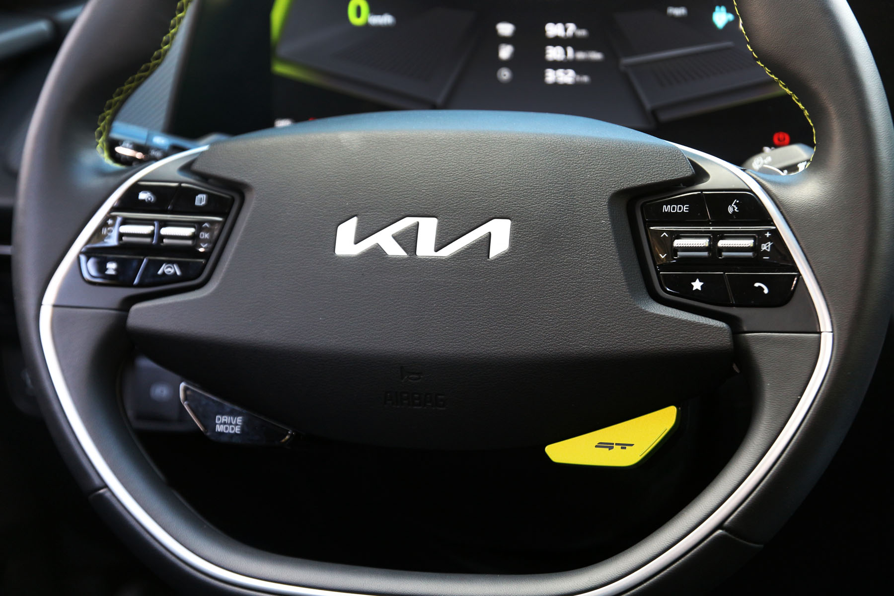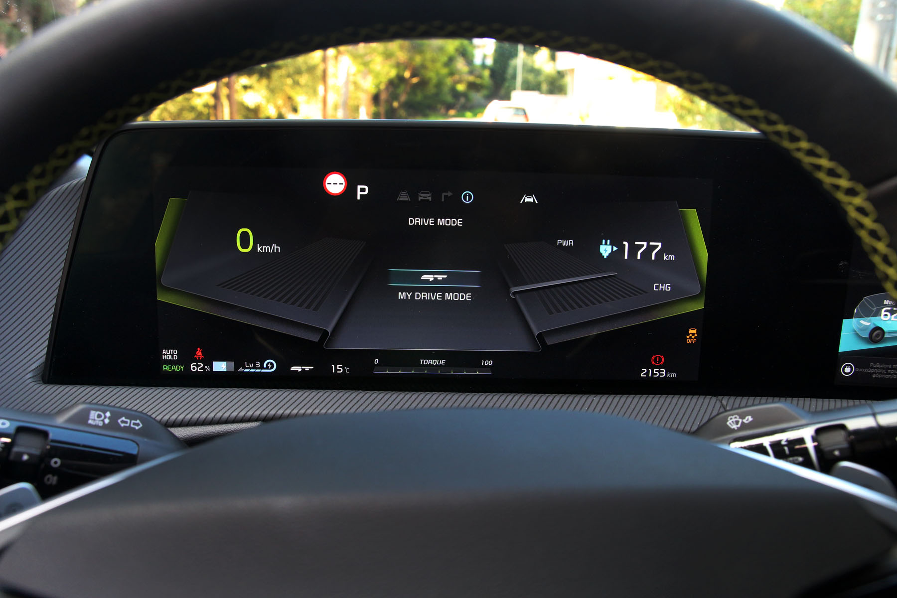 Το EV6 GT διαθέτει επίσης μπλοκέ E-LSD. Το ηλεκτρονικά ελεγχόμενο διαφορικό torque vectoring προσφέρει ανεξάρτητη κατανομή ροπής στους πίσω τροχούς και, τόσο με την υπερβολική ισχύ όσο και με το αυξημένο βάρος του αμαξώματος, μοιάζει χρήσιμο και σε κάνει να νιώθεις μεγαλύτερη σιγουριά, ακόμη και αν κάνεις το κάτι παραπάνω.