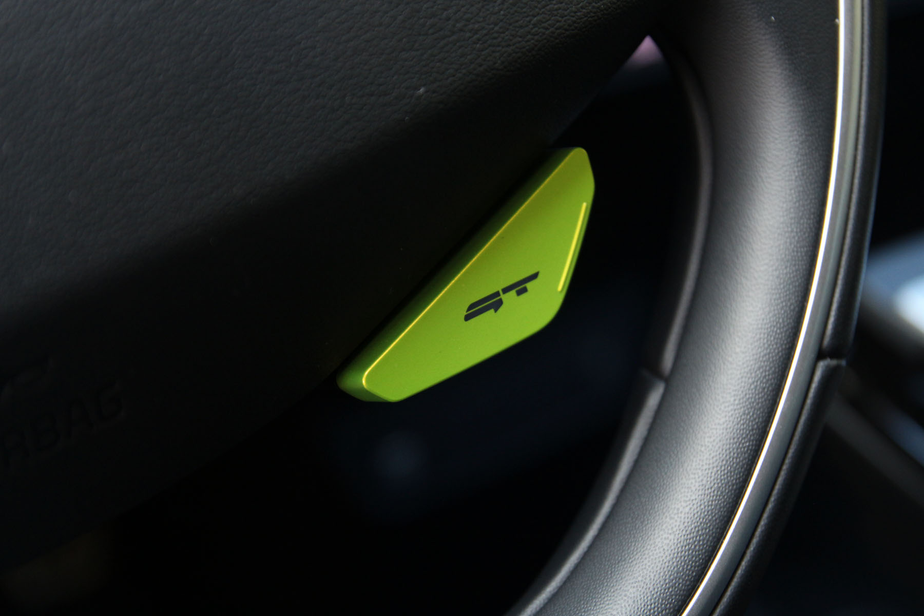 Το πράσινο κουμπάκι απενεργοποιεί στις χαμηλές ταχύτητες τα ηλεκτρονικά βοηθήματα και νιώθεις ότι μπορείς να διασκεδάσεις λίγο παραπάνω. Μάλιστα, αν πατήσεις ταυτόχρονα τα paddles για 3 δευτερόλεπτα, θα μπεις σε drift mode – γεγονός που ναι μεν σε ενθουσιάζει- ωστόσο μέσα στην πόλη ή και γενικότερα εκτός πίστας δεν μπορείς και δεν πρέπει να το φθάσεις στα όρια του.